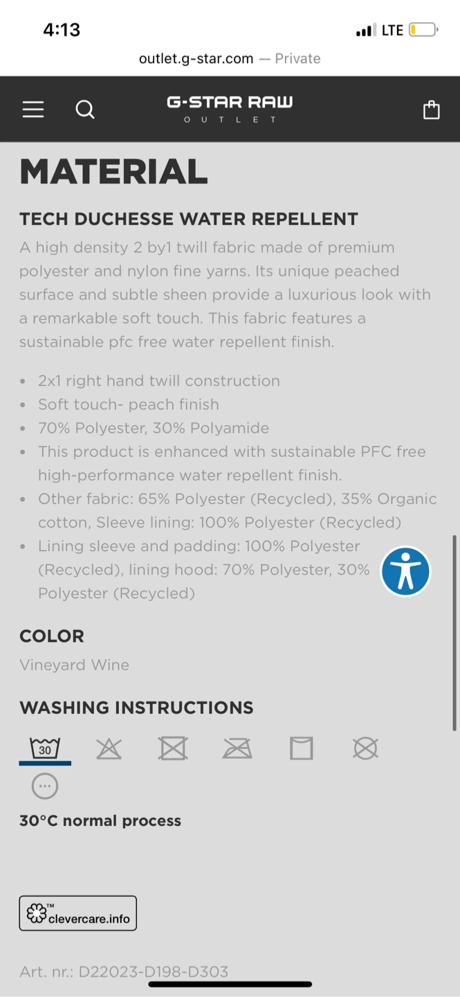 Made of 70% Polyester and 30% Polyamide, it also features a sustainable PFC-free water-repellent finish