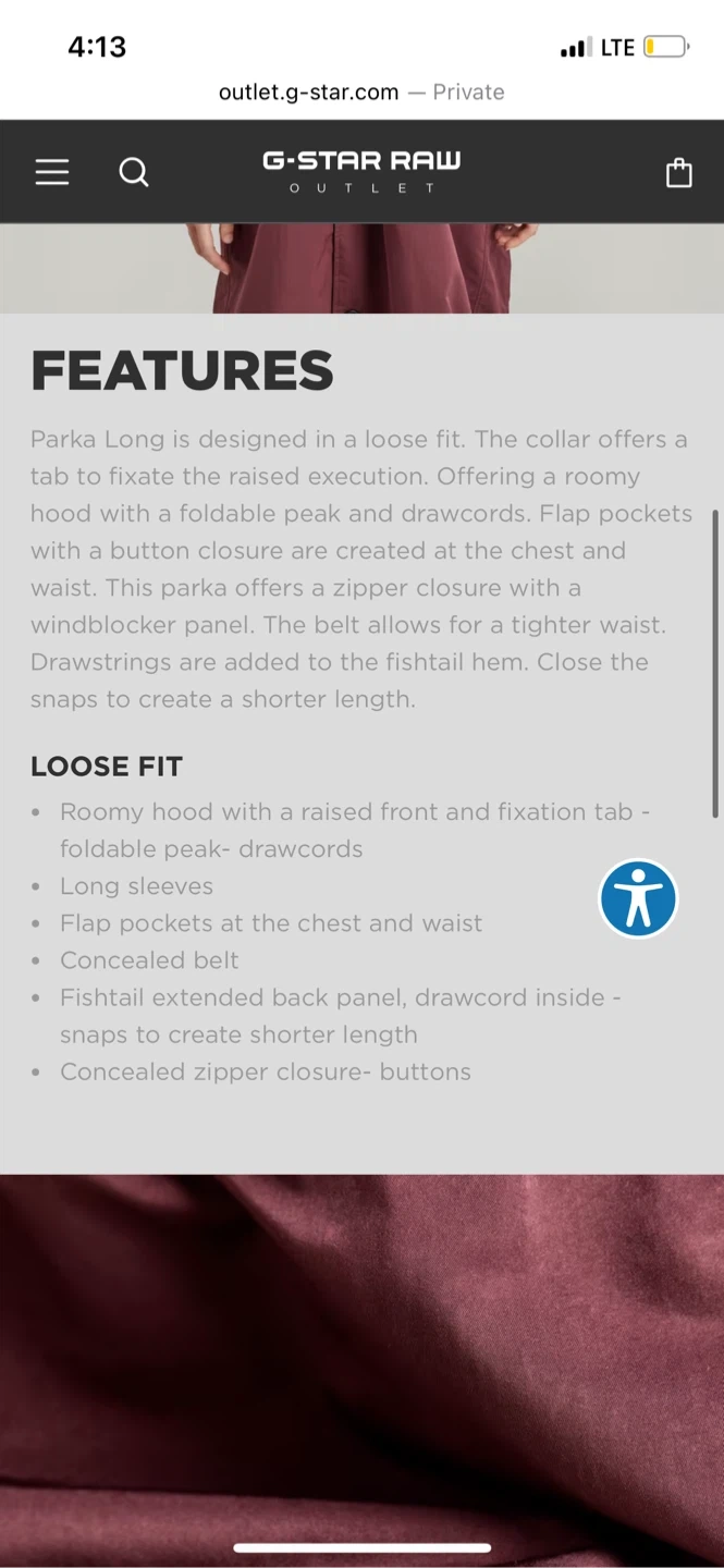 Selling a G-Star RAW Outlet Parka Long in a beautiful Vineyard Wine color!