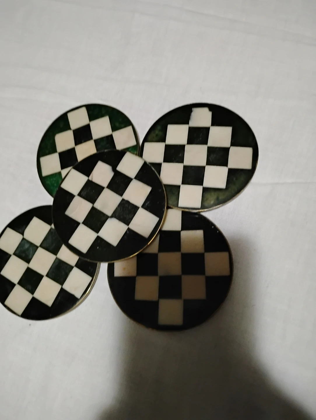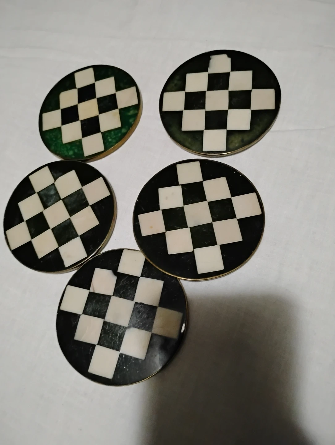 Set of 5 Round Checkerboard Malachi Coasters