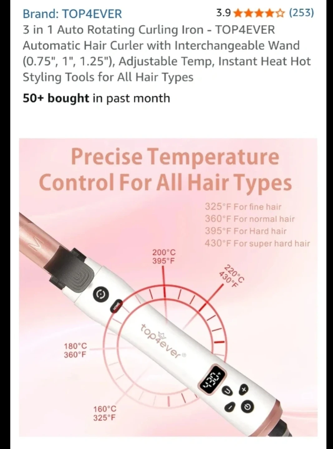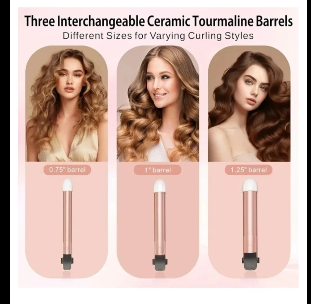 3 in 1 Auto Rotating Curling Iron - TOP4EVER Automatic Hair Curler with Interchangeable Wand (0.75", 1", 1.25"), Adjustable Temp, Instant Heat Hot Styling Tools for All Hair Types