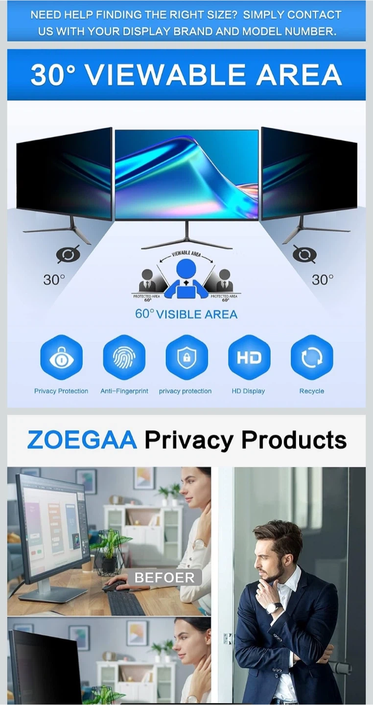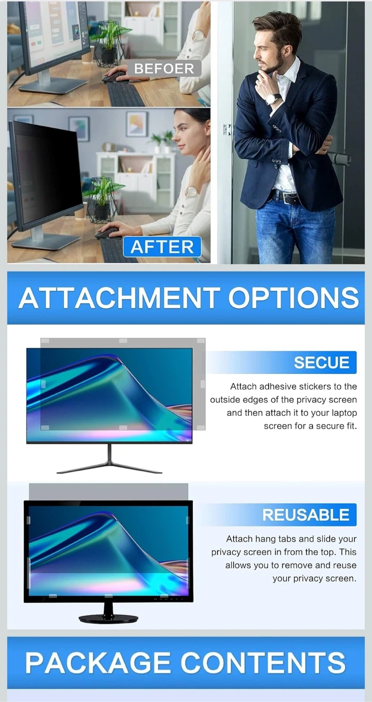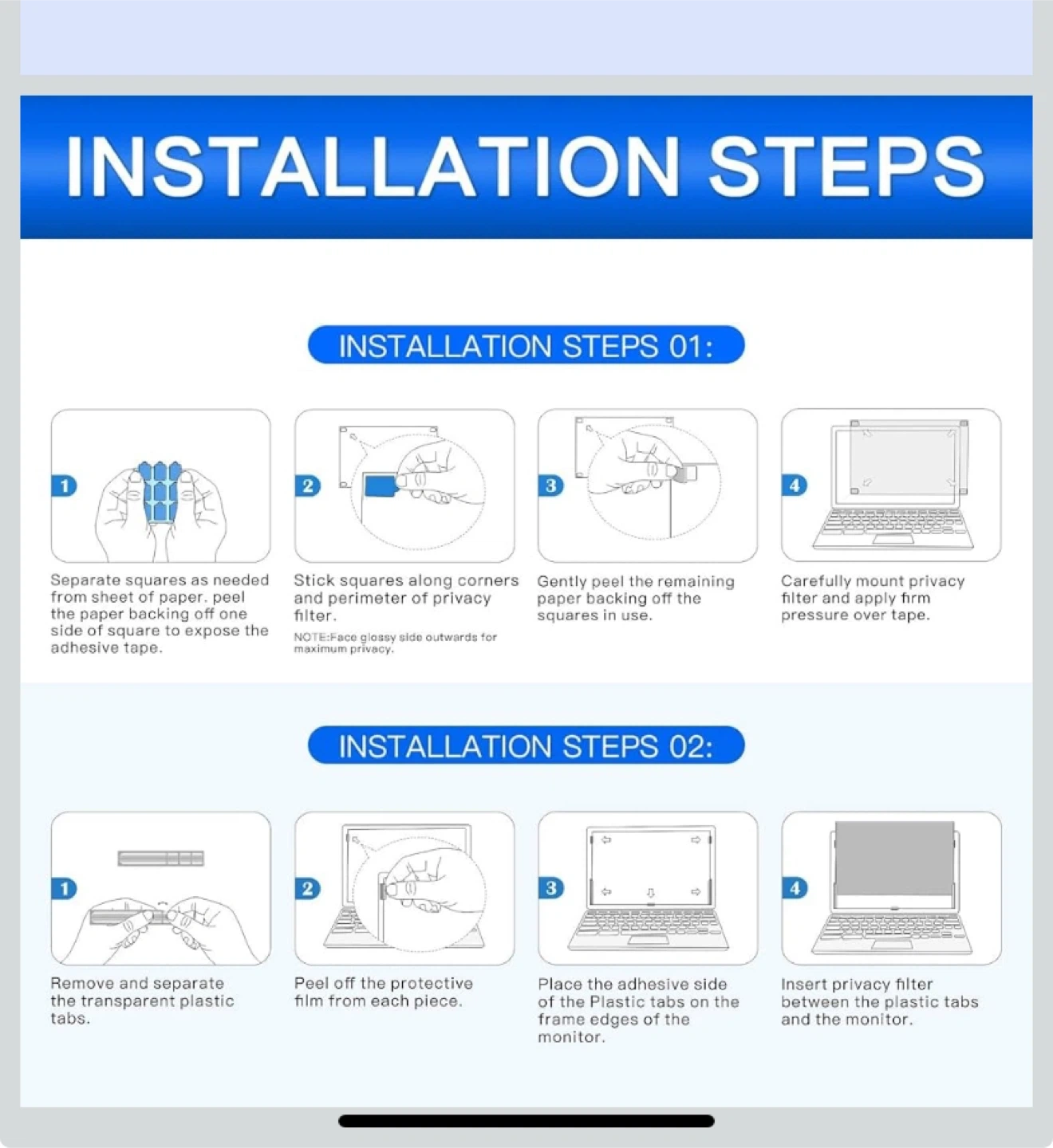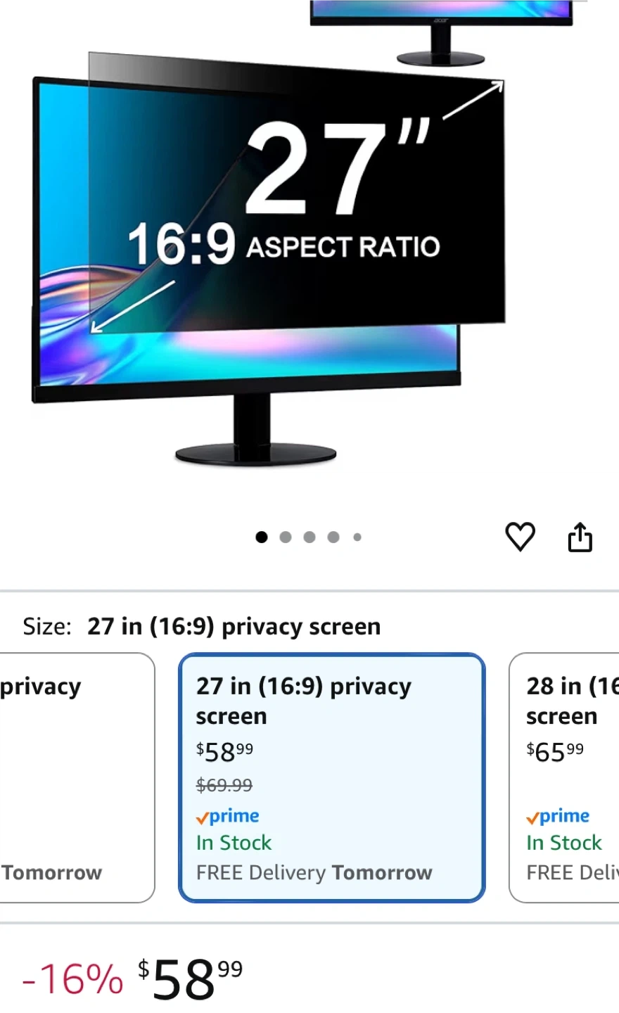Selling a 27 inch (16:9) privacy screen for monitors. It's in great condition and ready to use! This screen helps keep your work private and reduces glare. Easy to install with included instructions