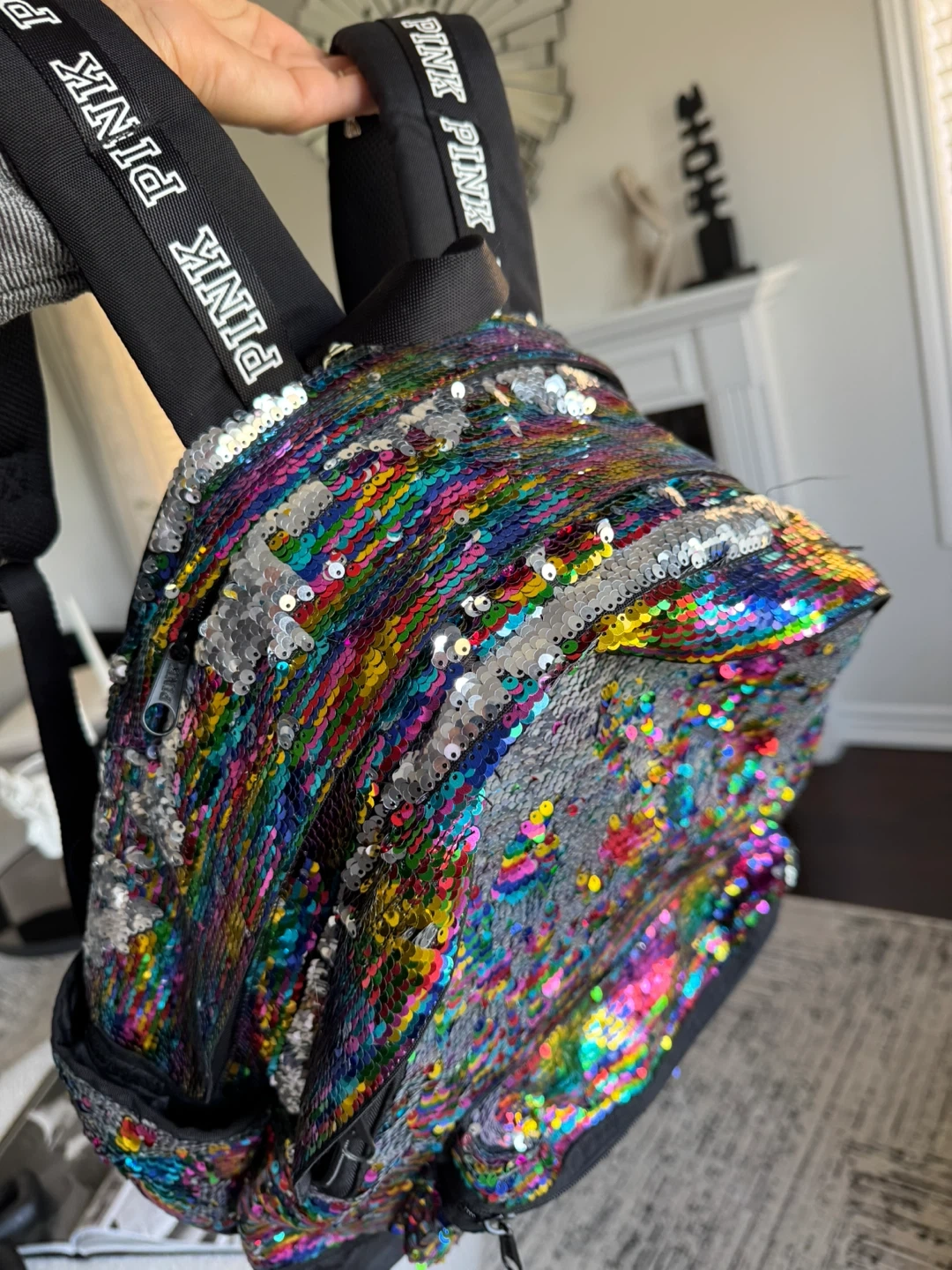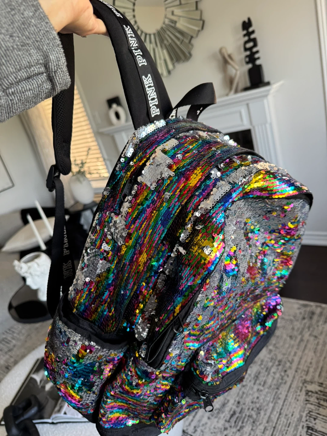 PINK Backpack Sequin Rainbow Iridescent