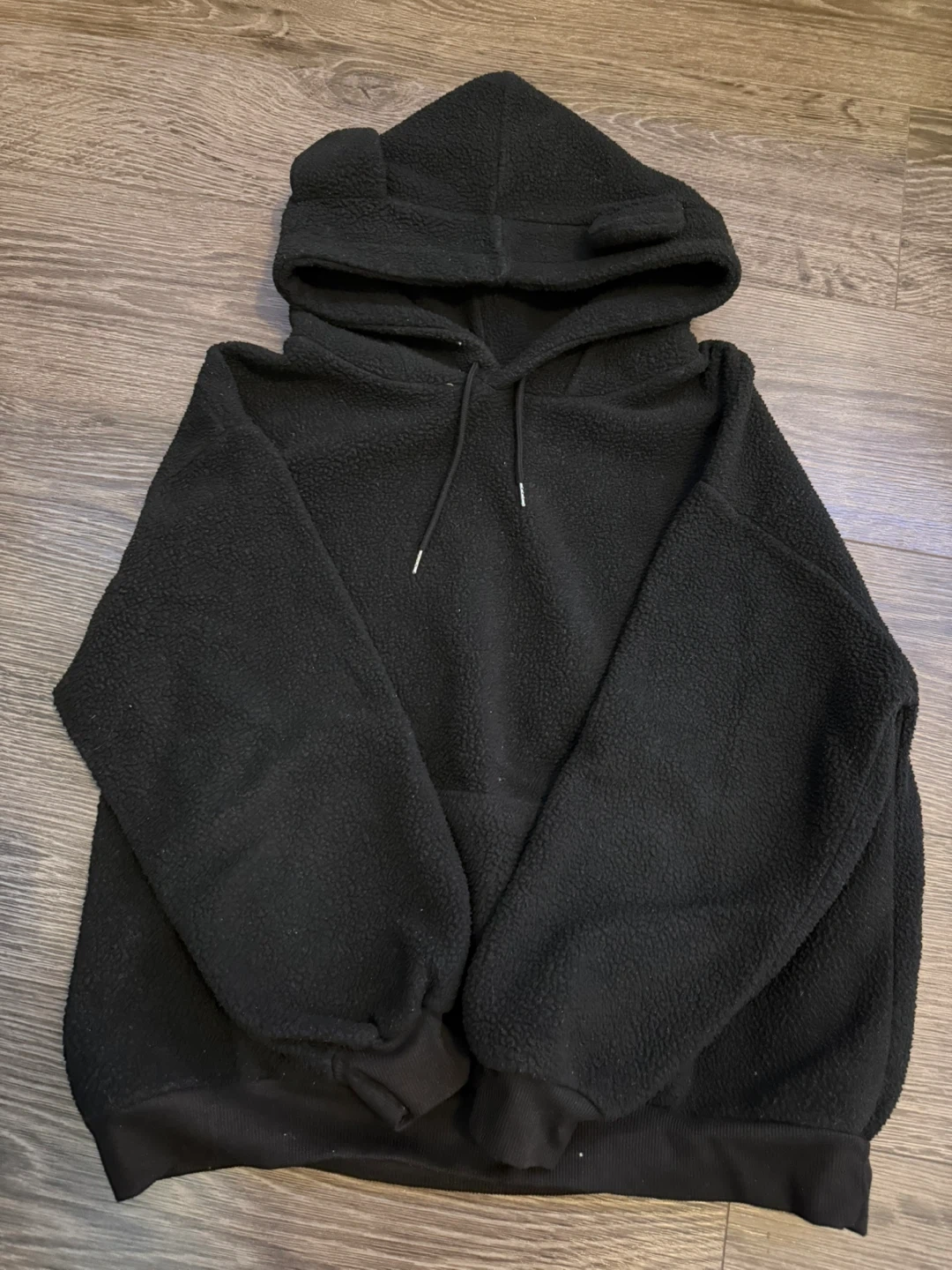 Selling a super cute and cozy black hoodie with bear ears! It's in great condition and perfect for staying warm and stylish. Size is a overfit small hoodie. Worn a couple times but still in good shape.