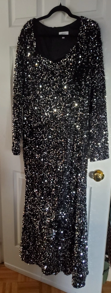 98Selling a beautiful black sequin dress from RyderSky. Size is 3XL and perfect for a night out or special occasion! The sequins catch the light beautifully, adding a touch of sparkle to your look. Never been worn coming from a smoke free pet free home.