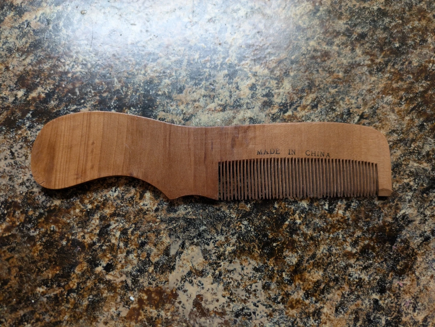 A lovely vintage wooden comb with a gentle curve and delicate hand-painted roses. It's made from natural wood, making it a gentle choice for your hair. This comb is useful for detangling and styling all hair types. It's a pretty accessory to keep with your grooming essentials! Measures just under 7 inches. Pick up in the West End of Vancouver