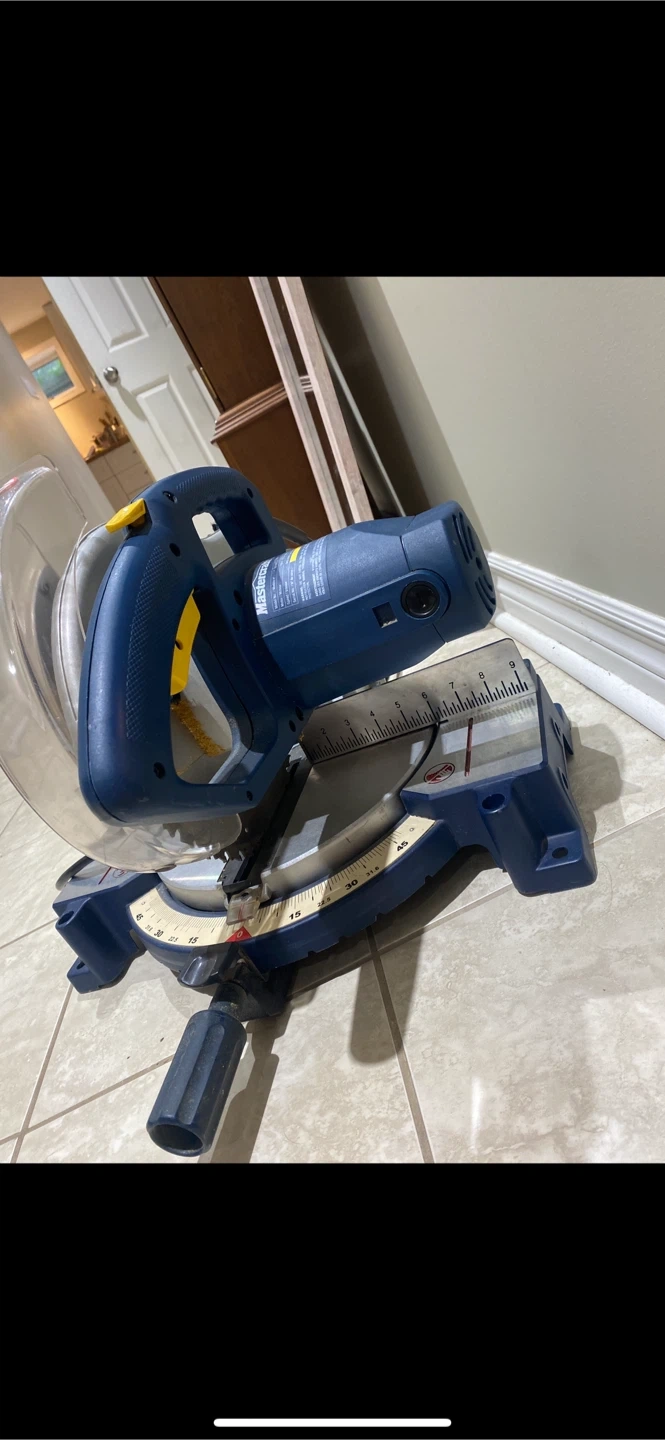 This Mastercraft mitre saw is a great tool for home projects. It has a powerful motor and a clear dust bag. Ideal for cutting wood and other materials with precision.