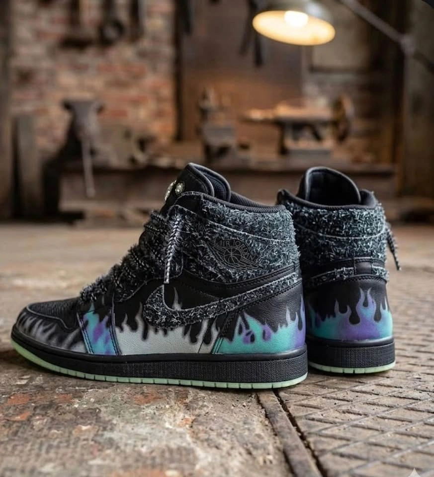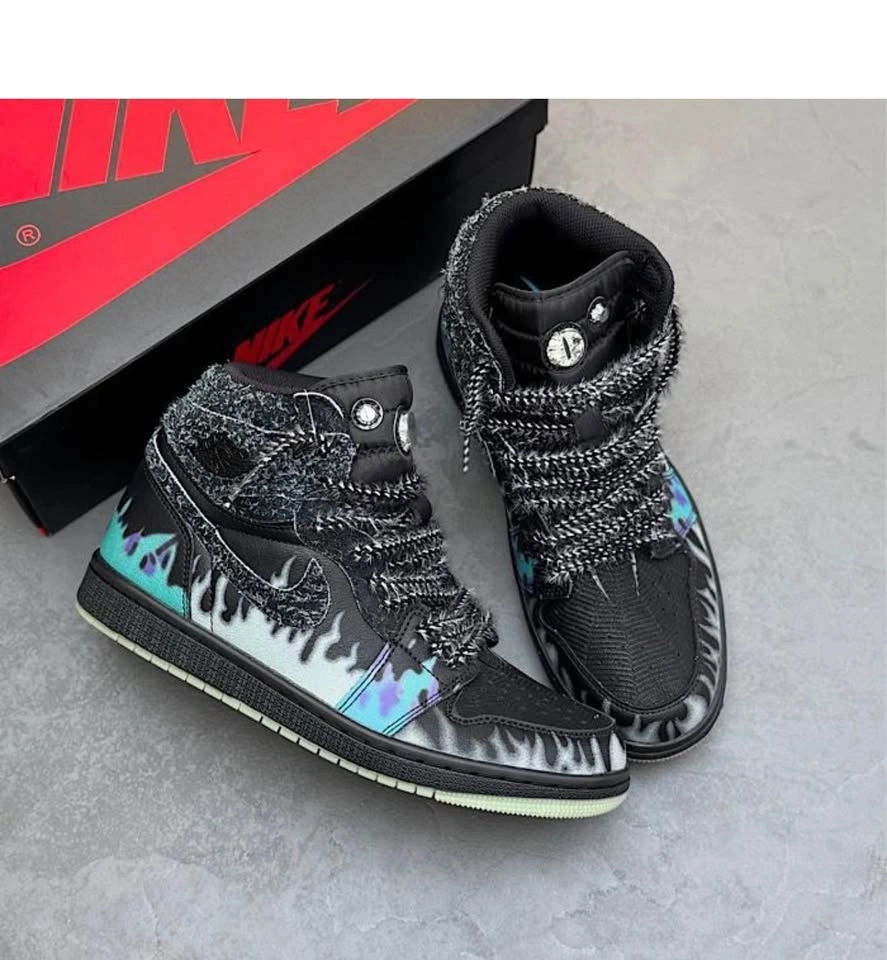 Air Jordan 1 Custom Flame Sneakers Limited Edition