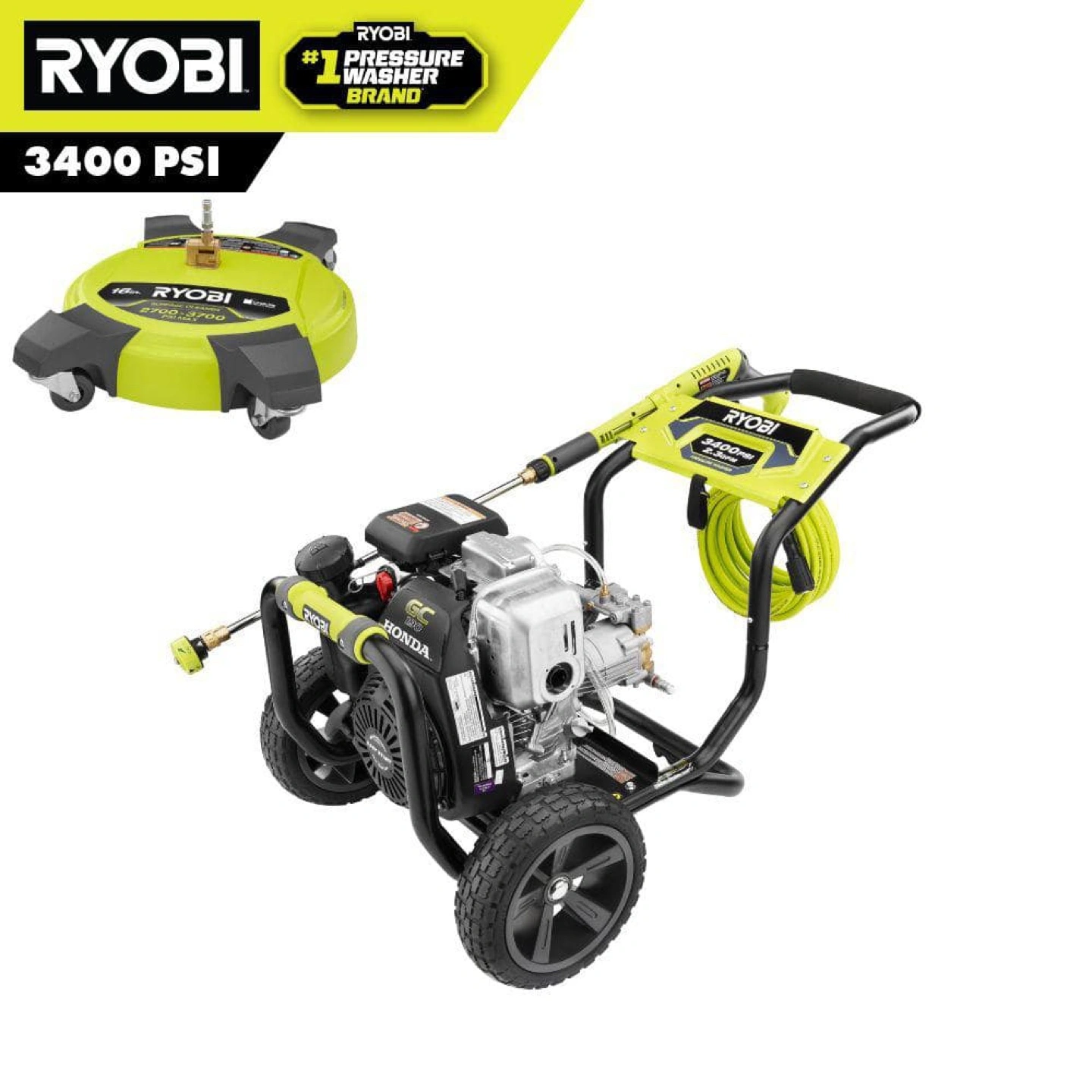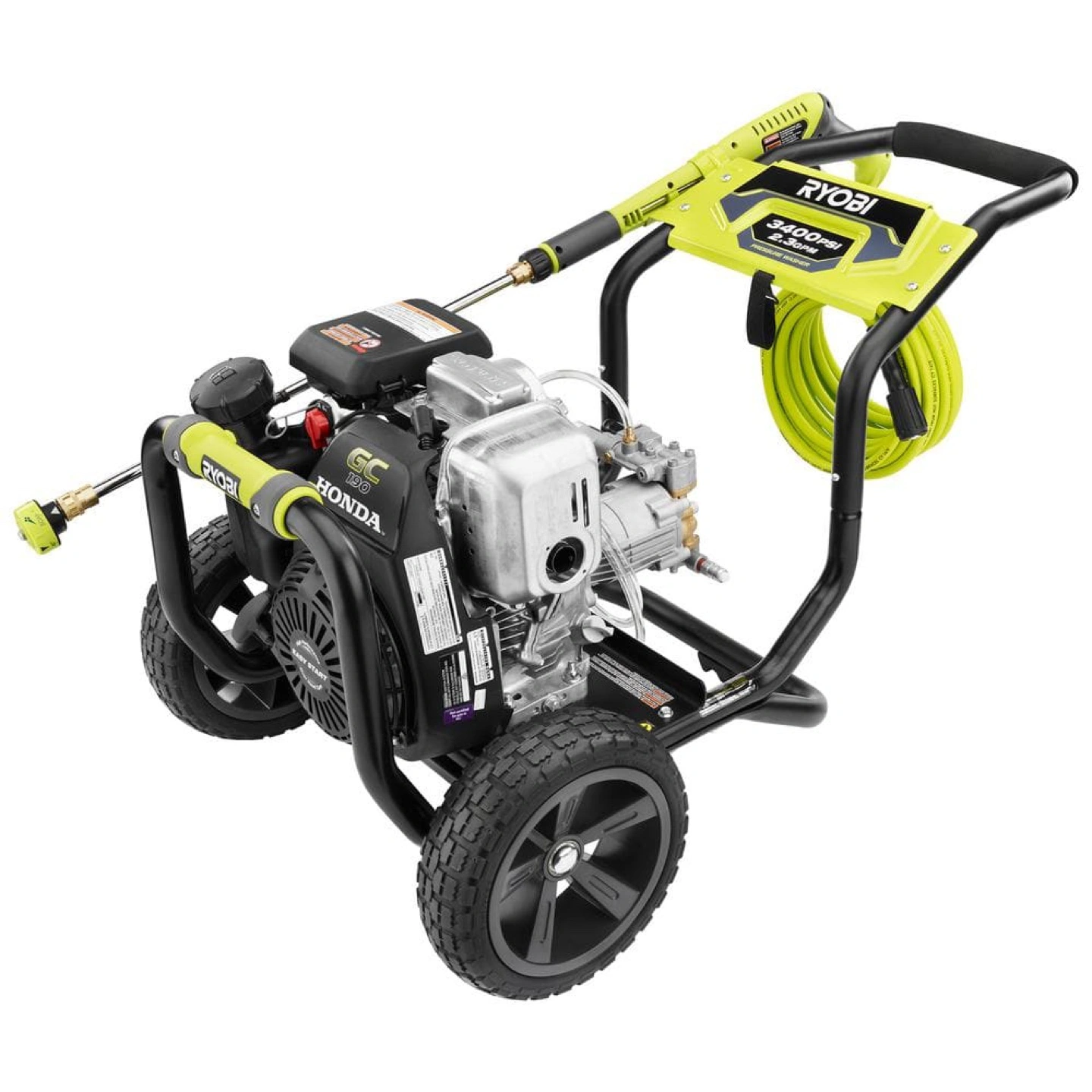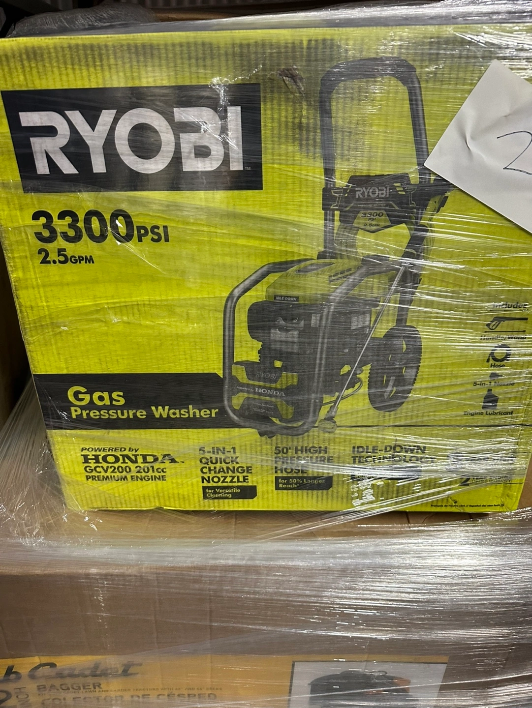 80Gas powered pressure washer. Comes with a 50' hose and a 5-in-1 quick change nozzle. Idle down technology for 20% longer run time.