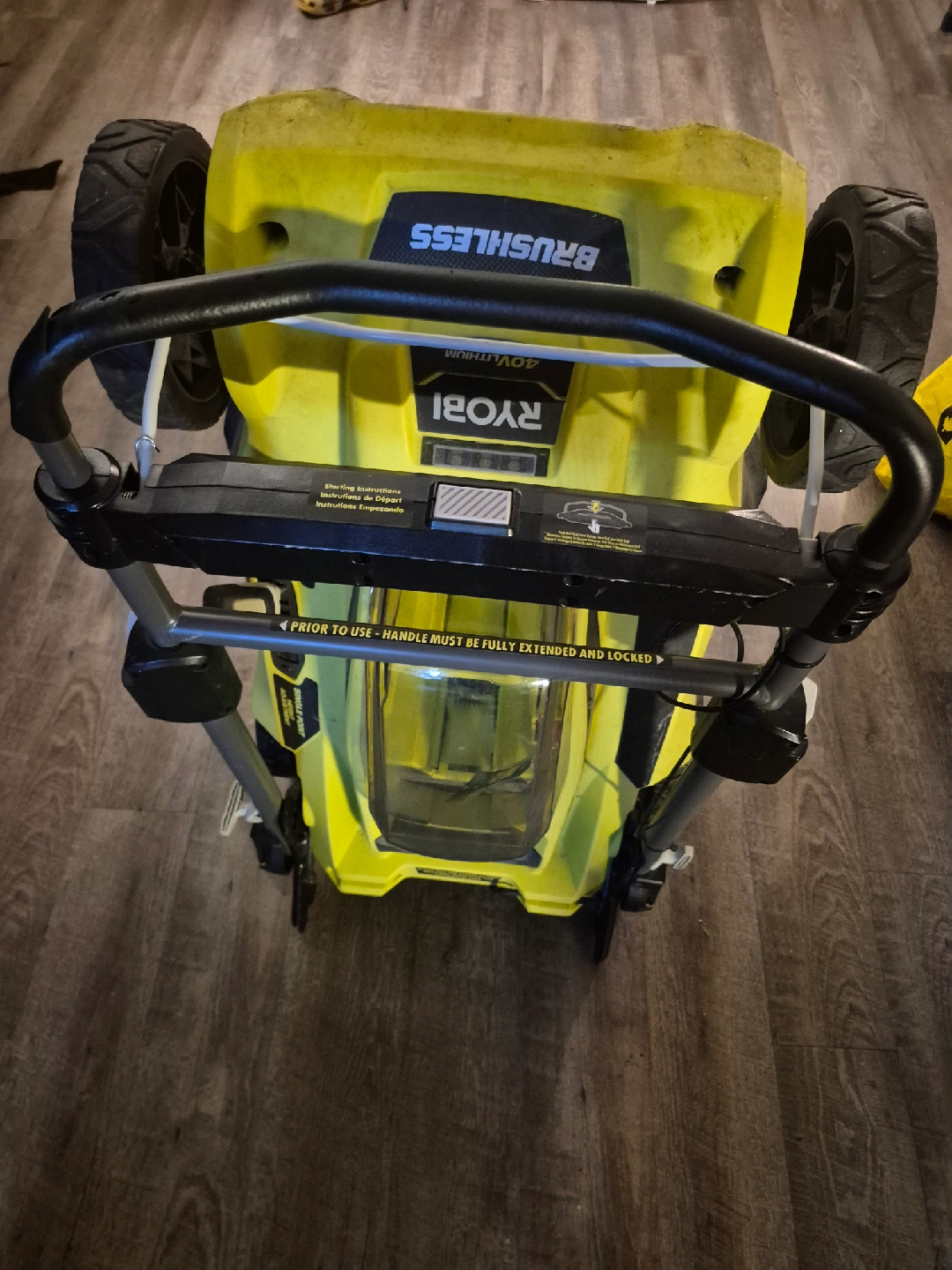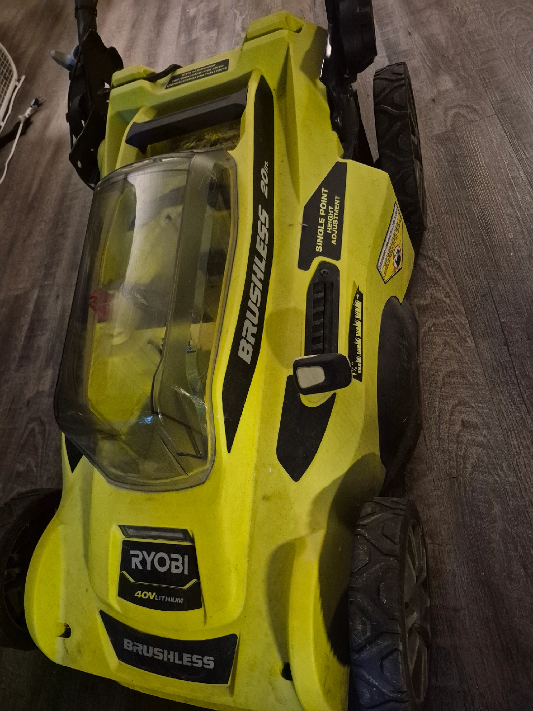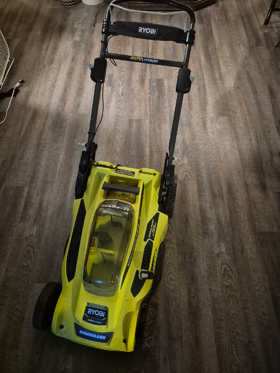 10Selling a Ryobi 40V Lithium Brushless lawn mower. It features a single point height adjustment and is ready to tackle your lawn