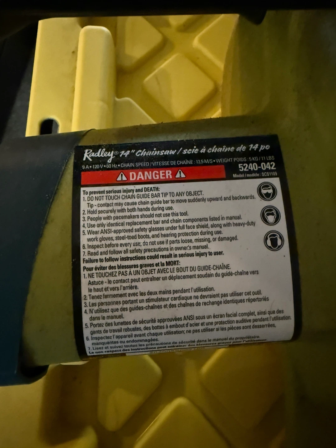 90Selling a Ryobi Radley 14" chainsaw. The model number is 5240-042. It's a handy tool for yard work and cutting small trees or branches. Please refer to the safety instructions on the tool before use