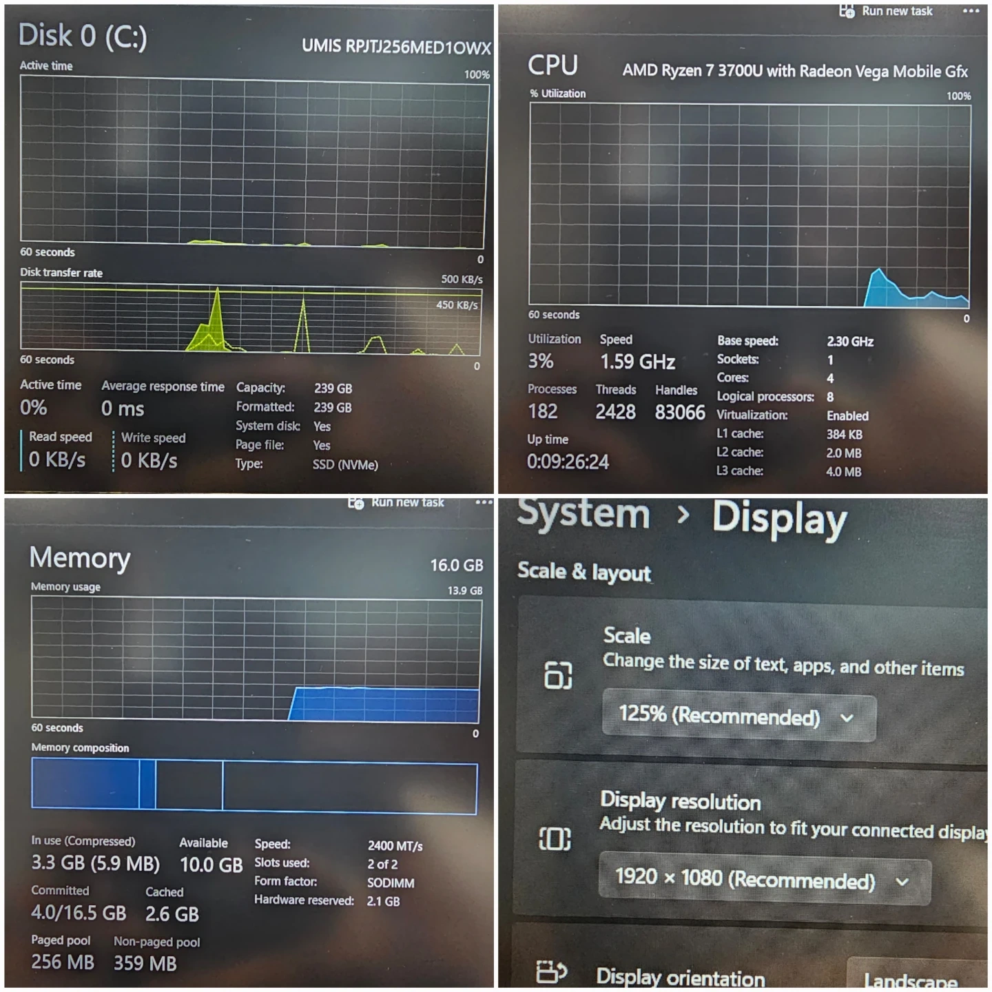 This Lenovo ThinkPad laptop features an AMD Ryzen 7 3700U processor with Radeon Vega Mobile Gfx. It comes with 16.0 GB of RAM and a 238 GB SSD. The display resolution is 1920 x 1080. Includes the power adapter.