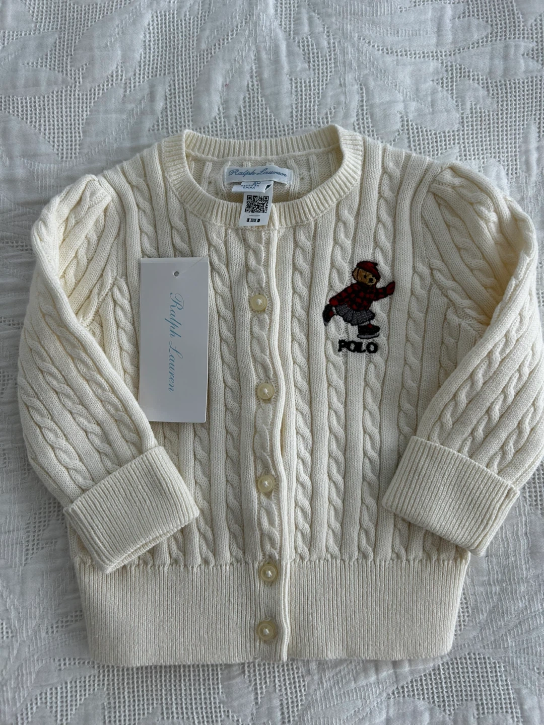 Ralph Lauren Baby Girls Cream Polo Bear Cable Knit Cardigan 9M