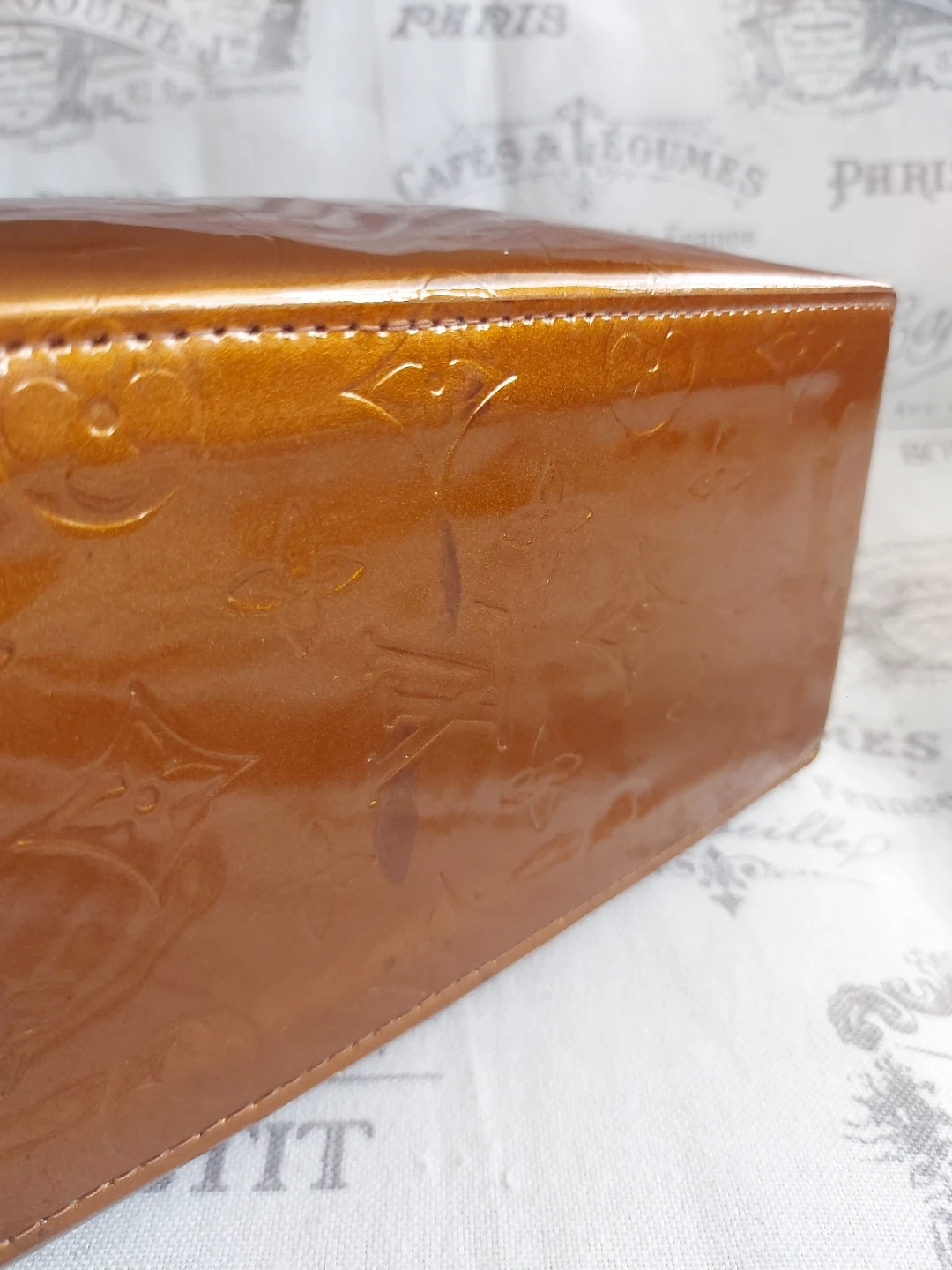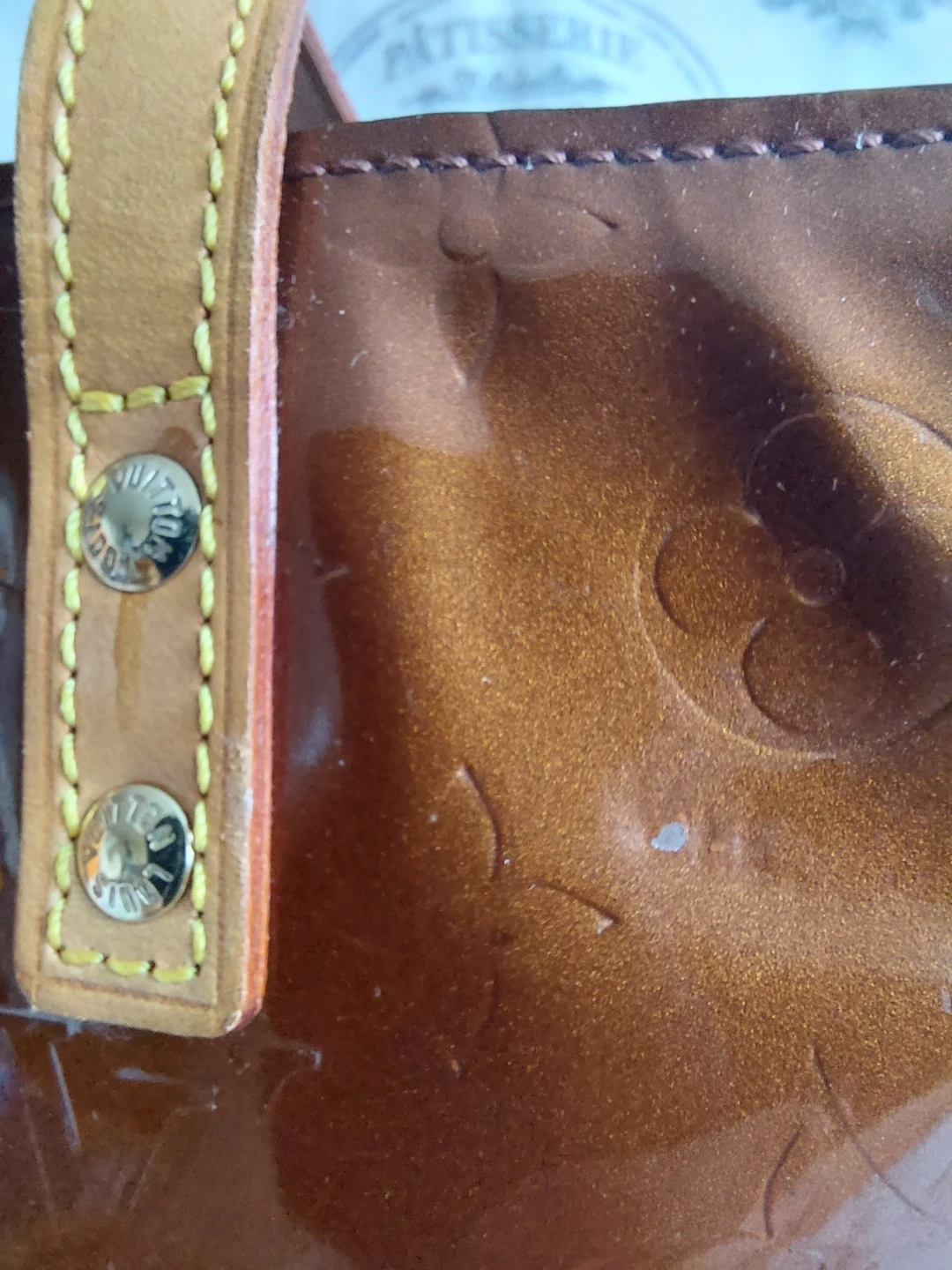 Vernis Leather - light rubbings in one bottom corner, some stains at the bottom, one tiny nick and scratch