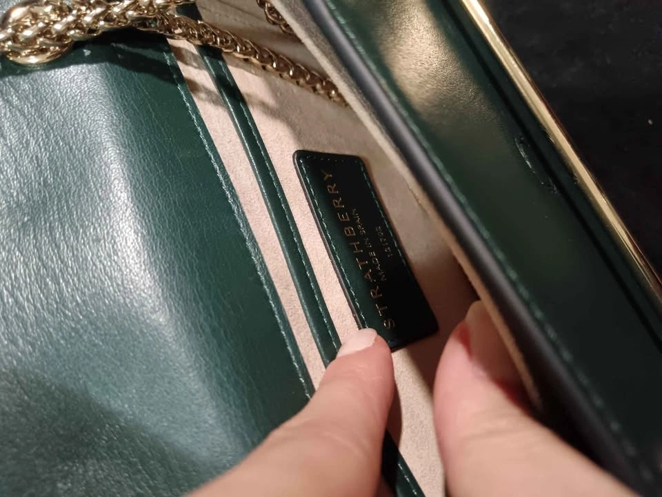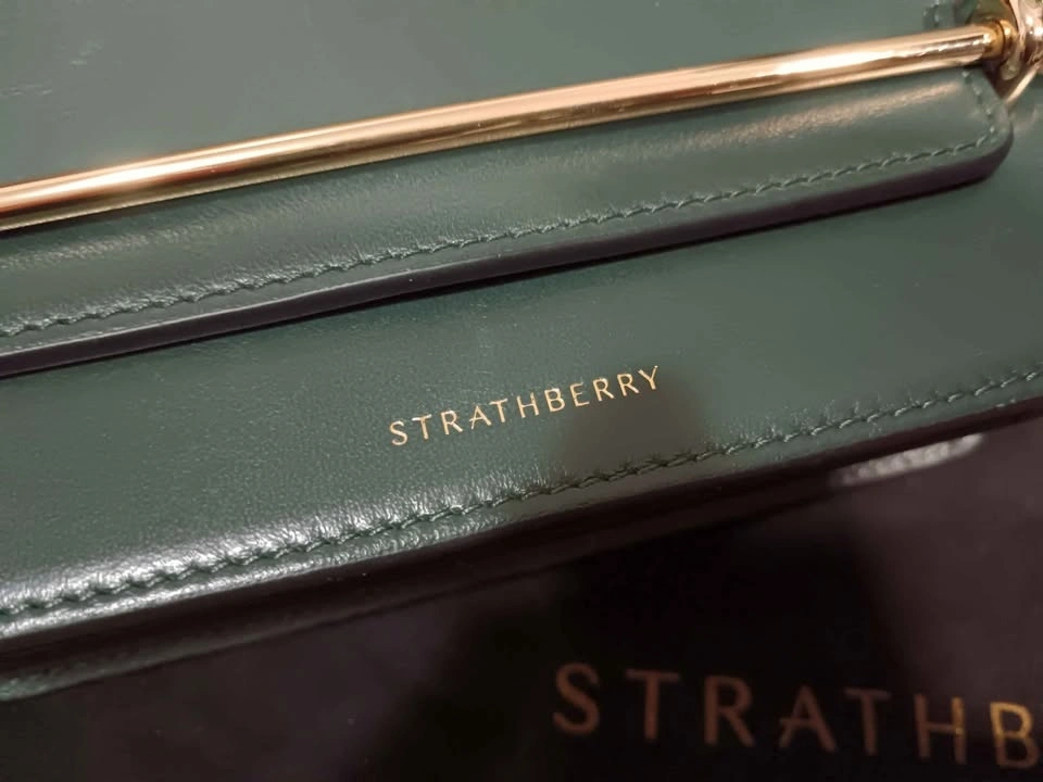 Authentic Strathberry Bottle Green East to West Mini Crossbody Bag. Used in great condition, minor scratches that aren't so obvious unless looking from specific angles.