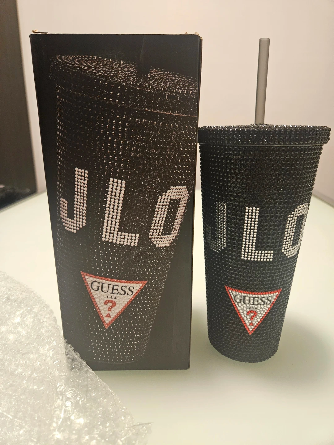 JLO x GUESS Limited Edition Rhinestone Tumbler – BNIB w/ Straw