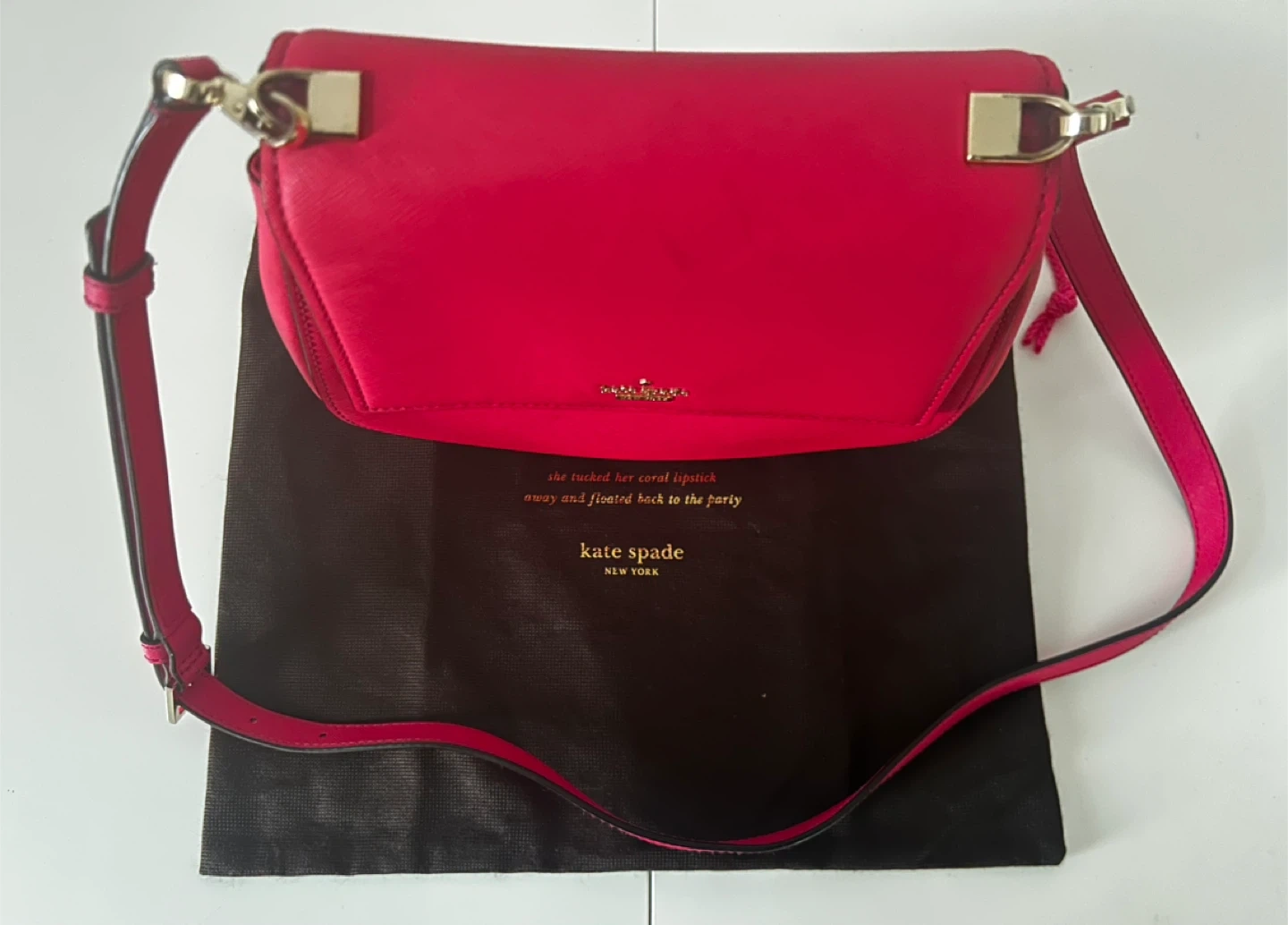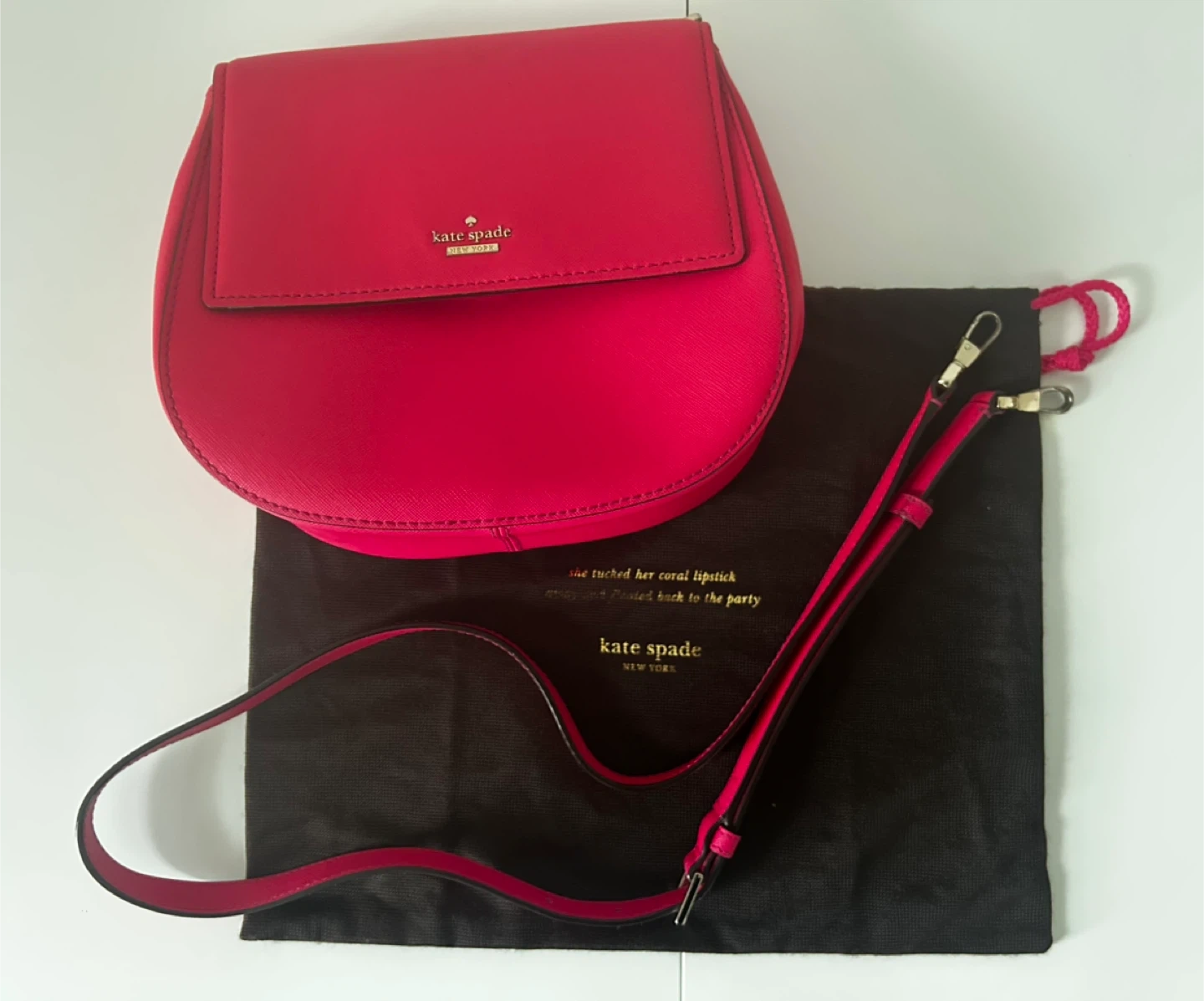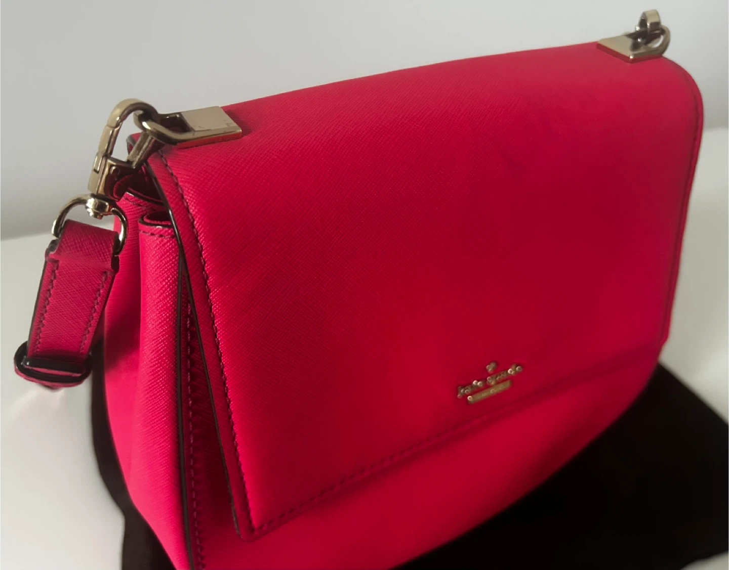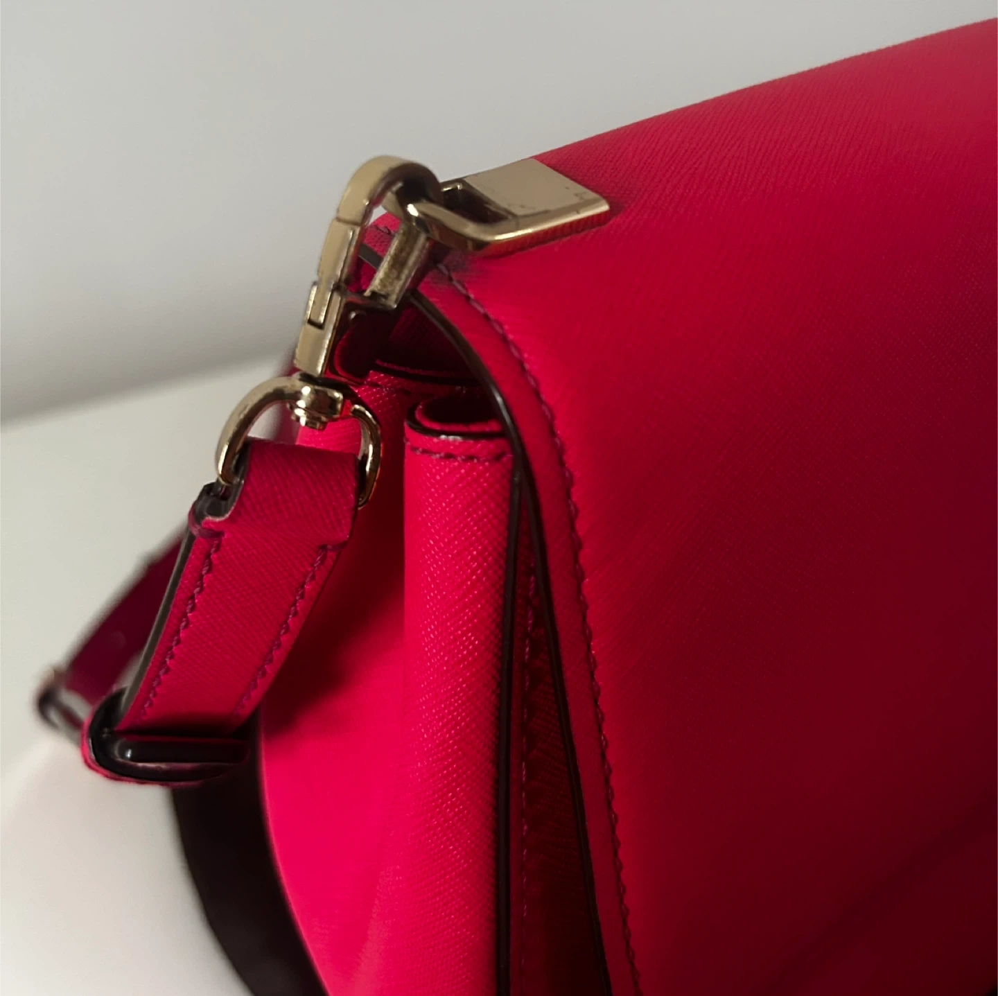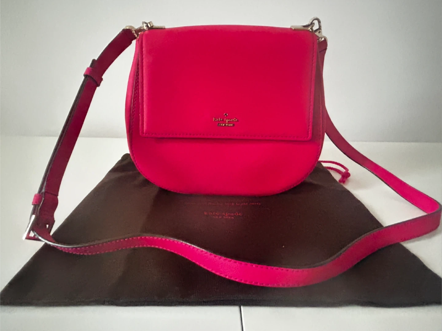Authentic Kate Spade New York hot pink saffiano leather crossbody bag in excellent, like-new condition