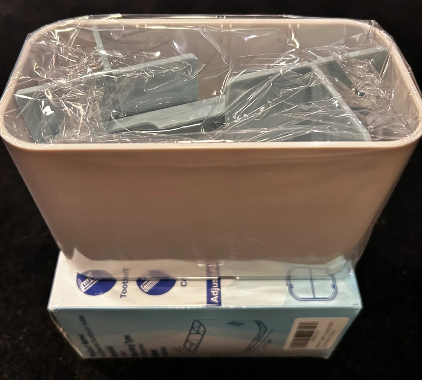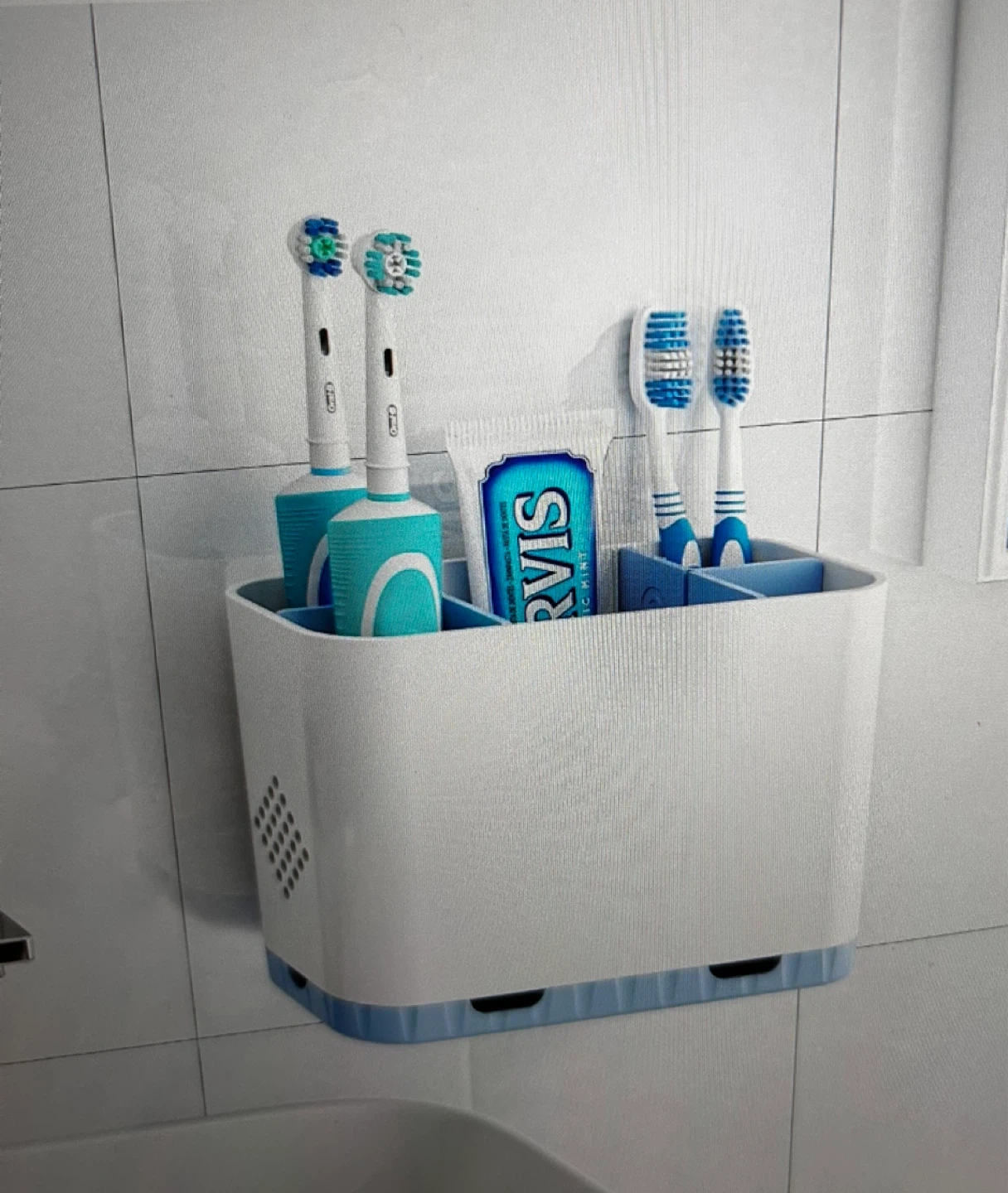 Toothbrush and toothpaste holder with removable dividers (material: plastic)