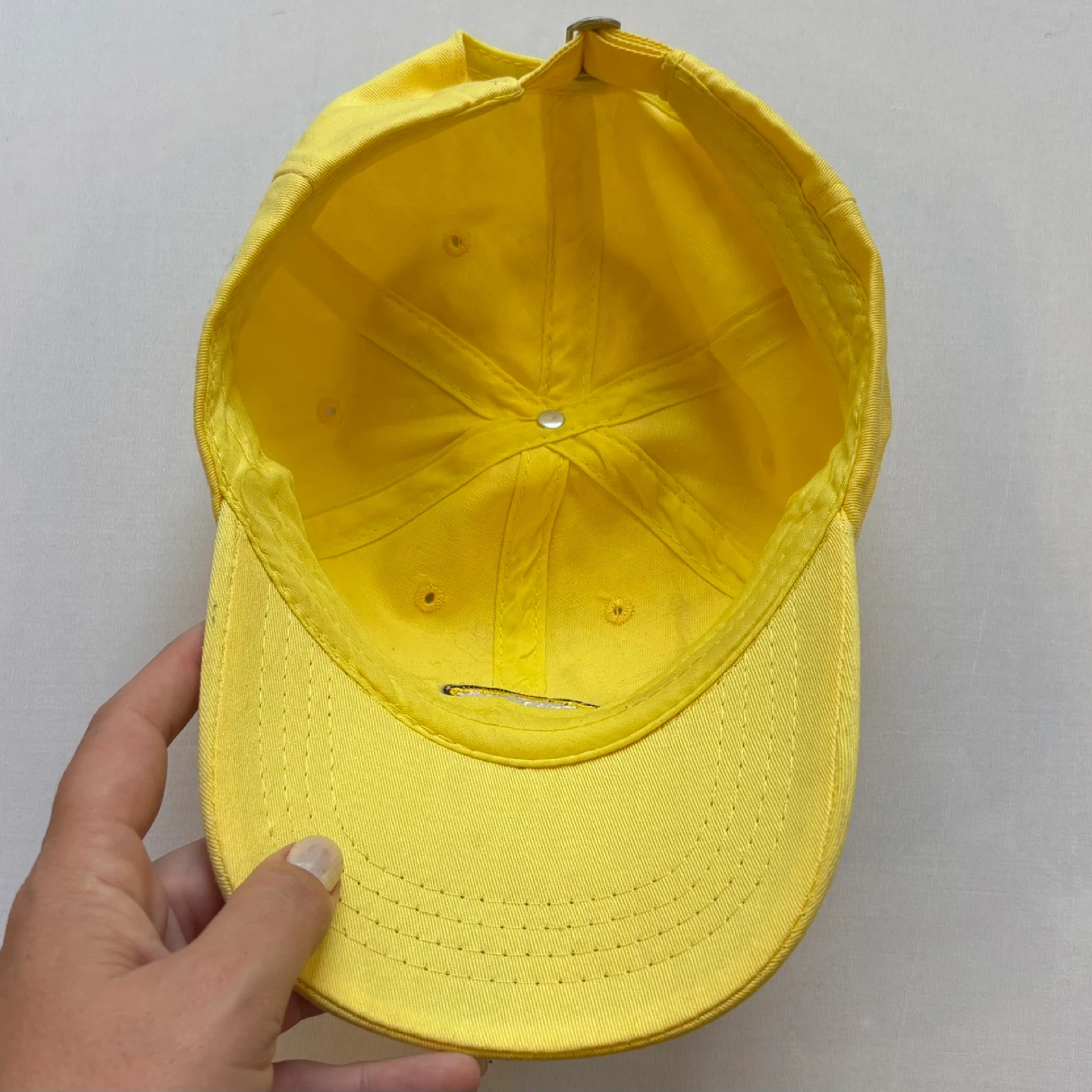 Bright and fun, this Mike's promotional baseball cap is a perfect statement piece. The hat features the classic Mike's logo embroidered in black and white on a vibrant yellow unstructured "dad hat" silhouette. It has a curved brim and an adjustable strap with a metal buckle closure, ensuring a comfortable One Size Fits Most fit. Ideal for summer, festivals, the beach, or any fan of Mike's Hard Lemonade merchandise looking for a pop of colour and a casual, retro-inspired look.