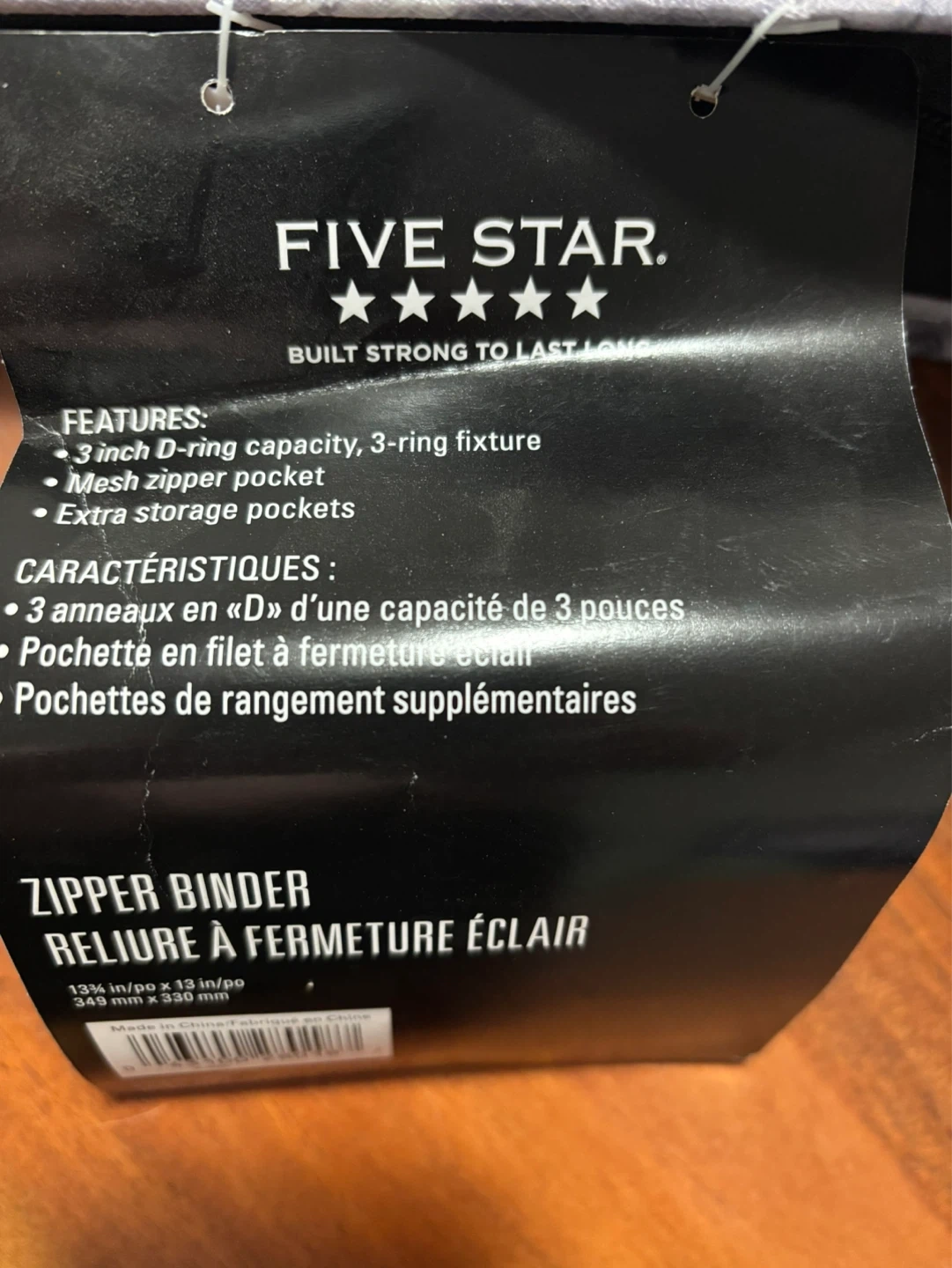 Five Star Zipper Binder 3-Ring 13" x 11"