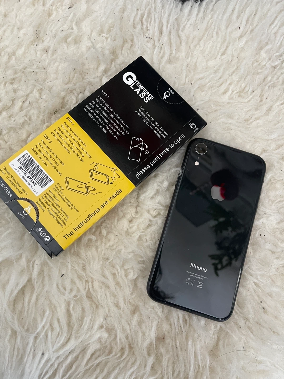 Selling a black iPhone XR, 256GB, comes with a phone case and 2 brand new tempered glass screen protector. It's in good condition and ready for a new owner!