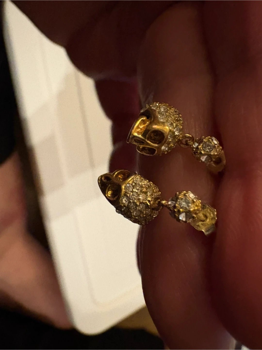 • Gold-tone rhinestone skull earrings