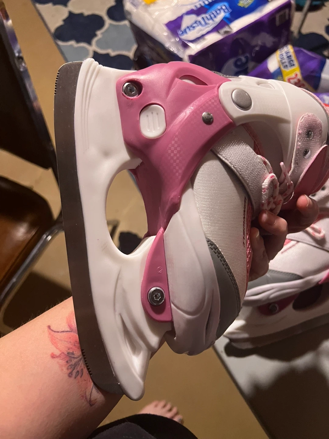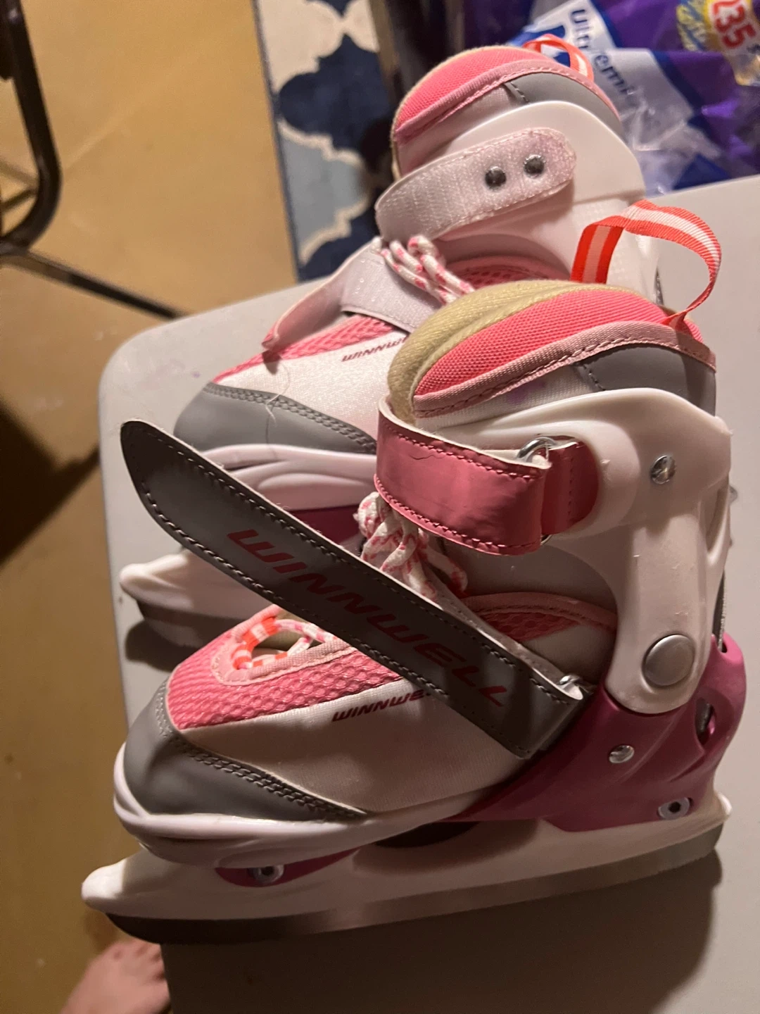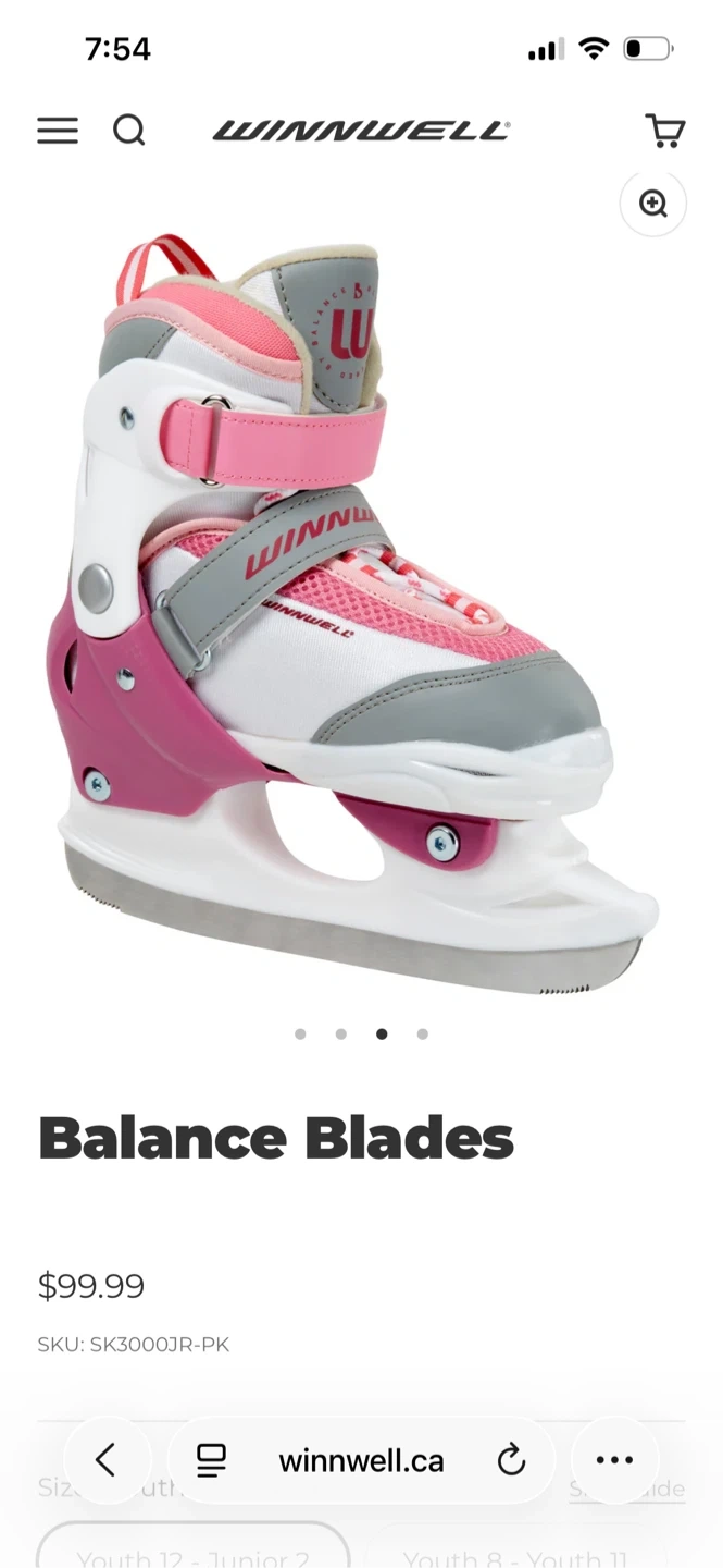 These pink and white Winnwell youth ice skates are adjustable for a growing foot. They feature a supportive boot and secure straps for stability. Size is 2Y. Paid $99 asking $75. Only used 4 times