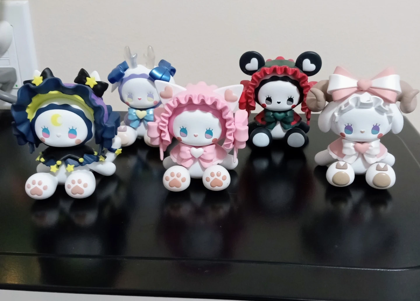 Super cute Lucky Emma collectible figurines featuring charming animal designs. Each character comes with a unique outfit and adorable details like paw prints and bows. Perfect for display or gifting!