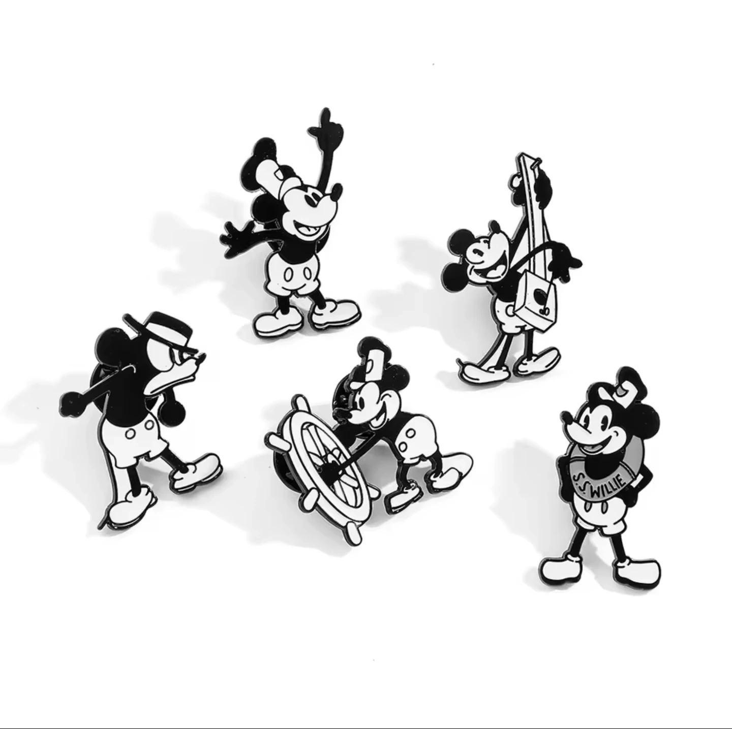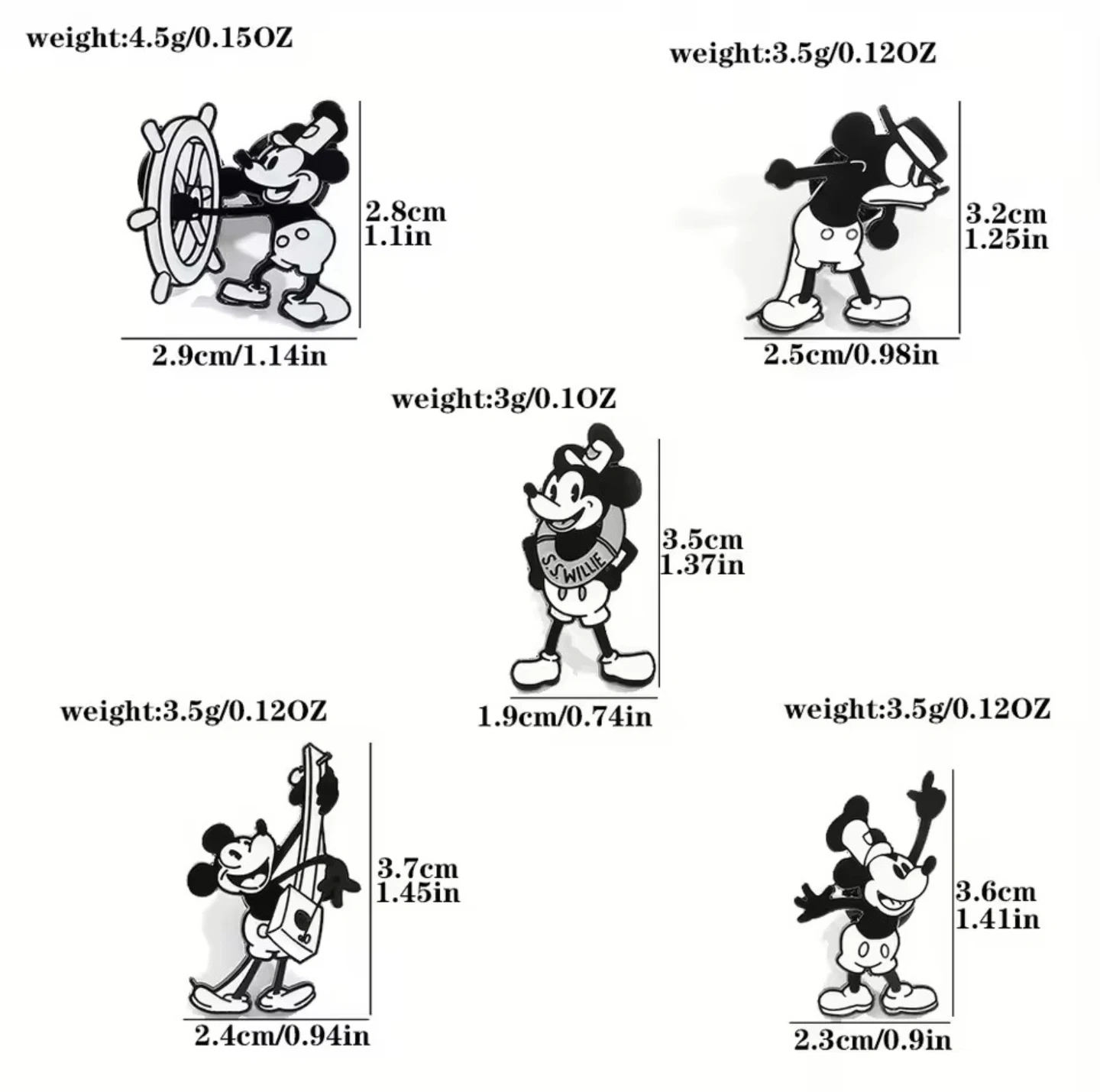 Mickey Mouse First Generation Set of 5 Brooch Enamel Pin Zinc Alloy MetalType. SHIP FROM A SMOKE-FREE AND PET-FREE HOME.