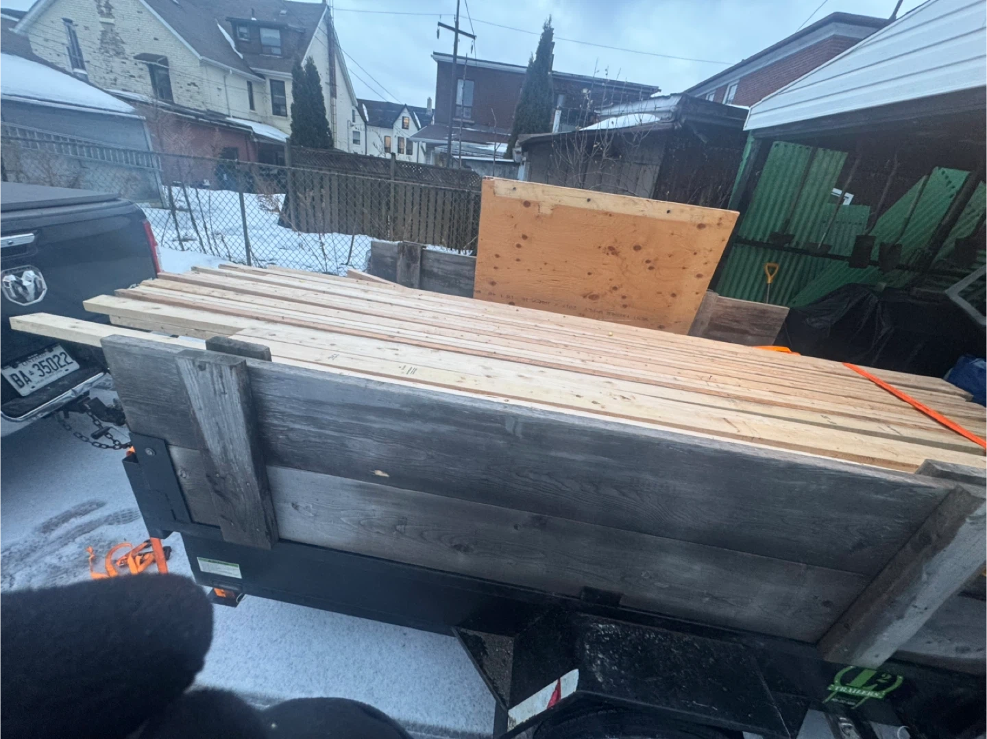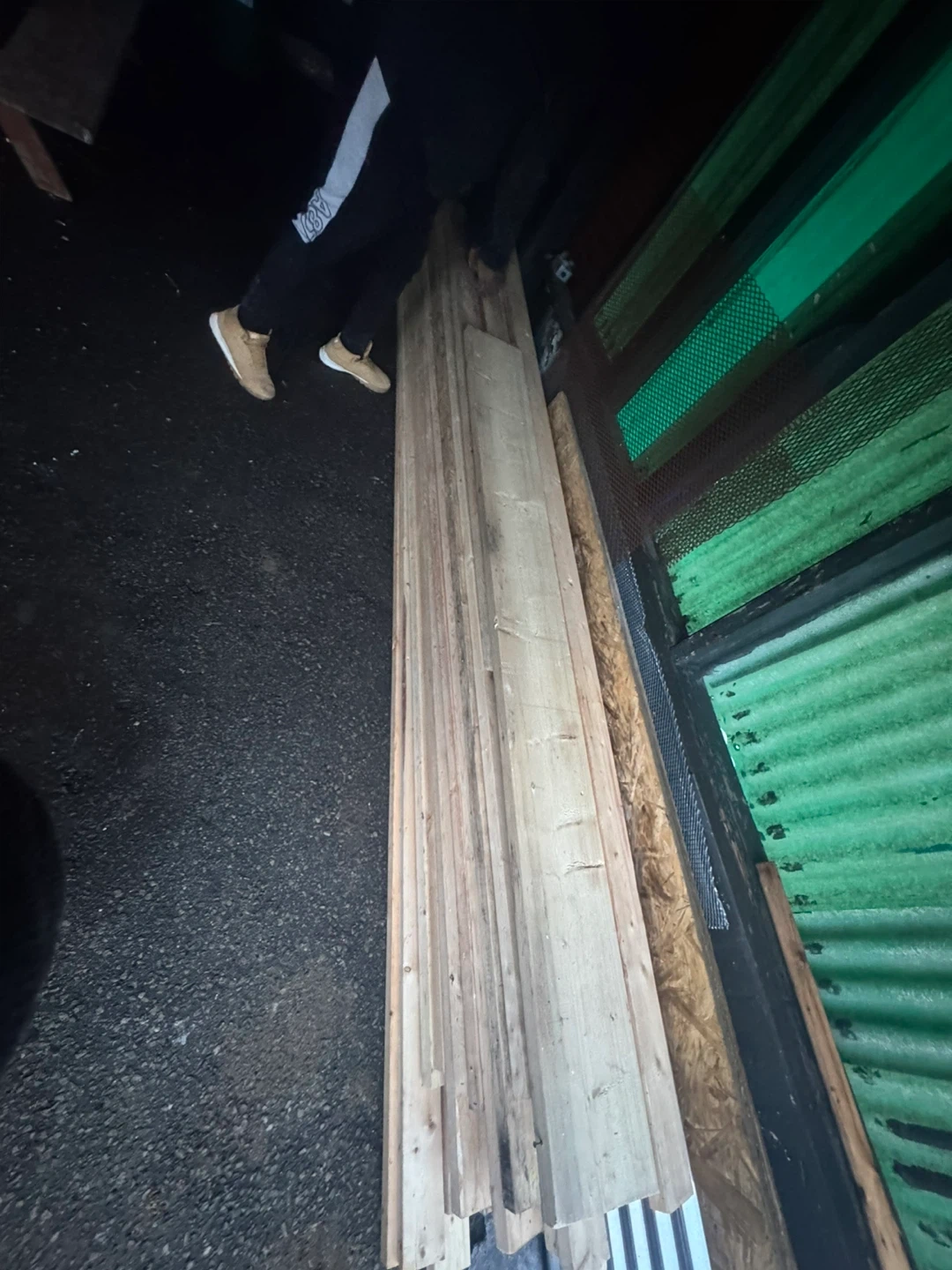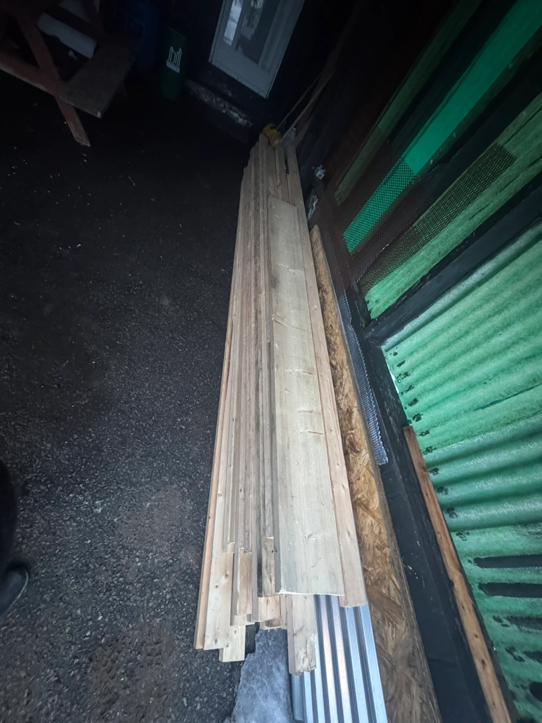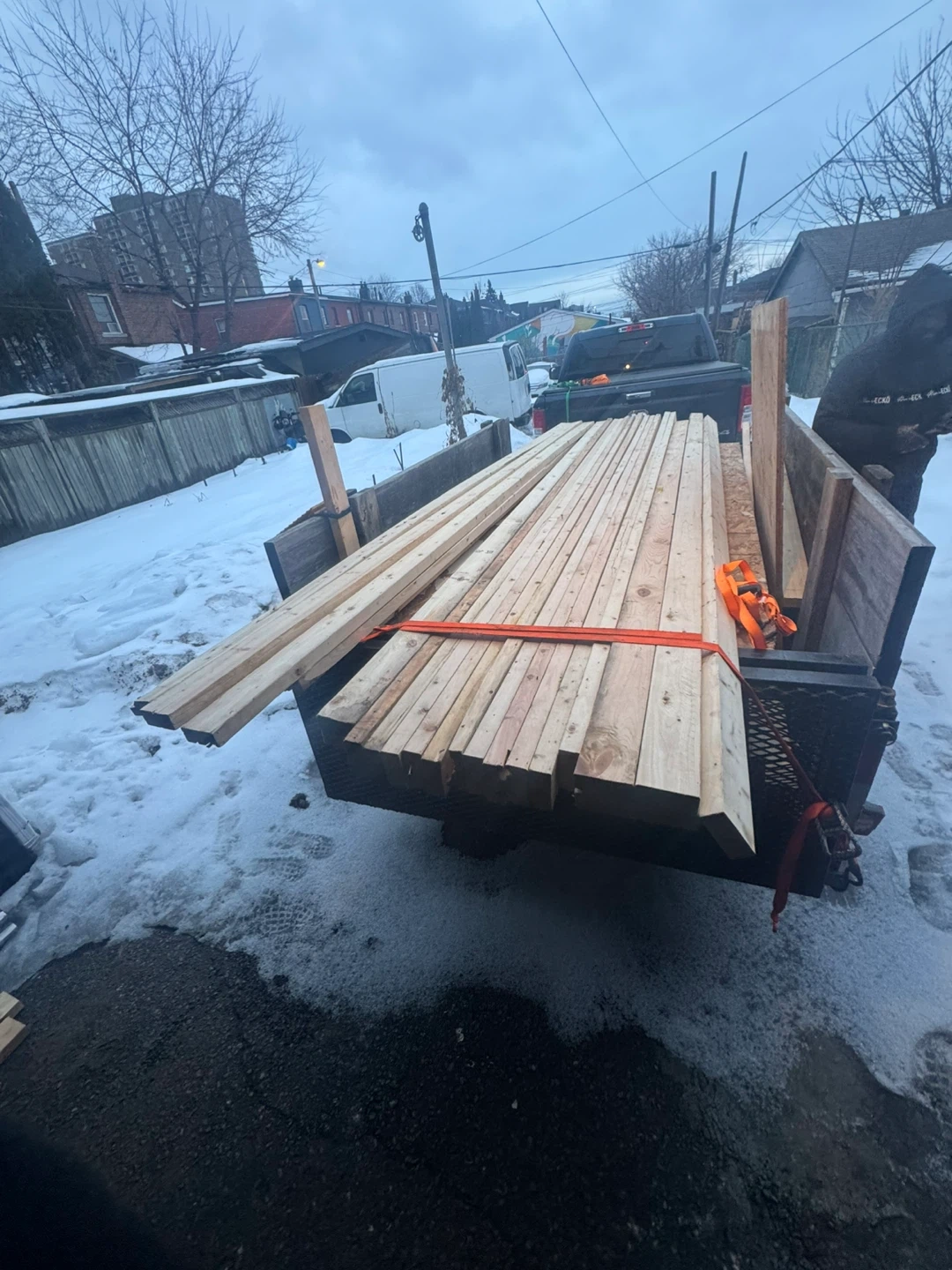 Bundle of assorted lumber and plywood sheets. Great for construction or renovation projects. Includes various lengths of dimensional lumber and several sheets of plywood.