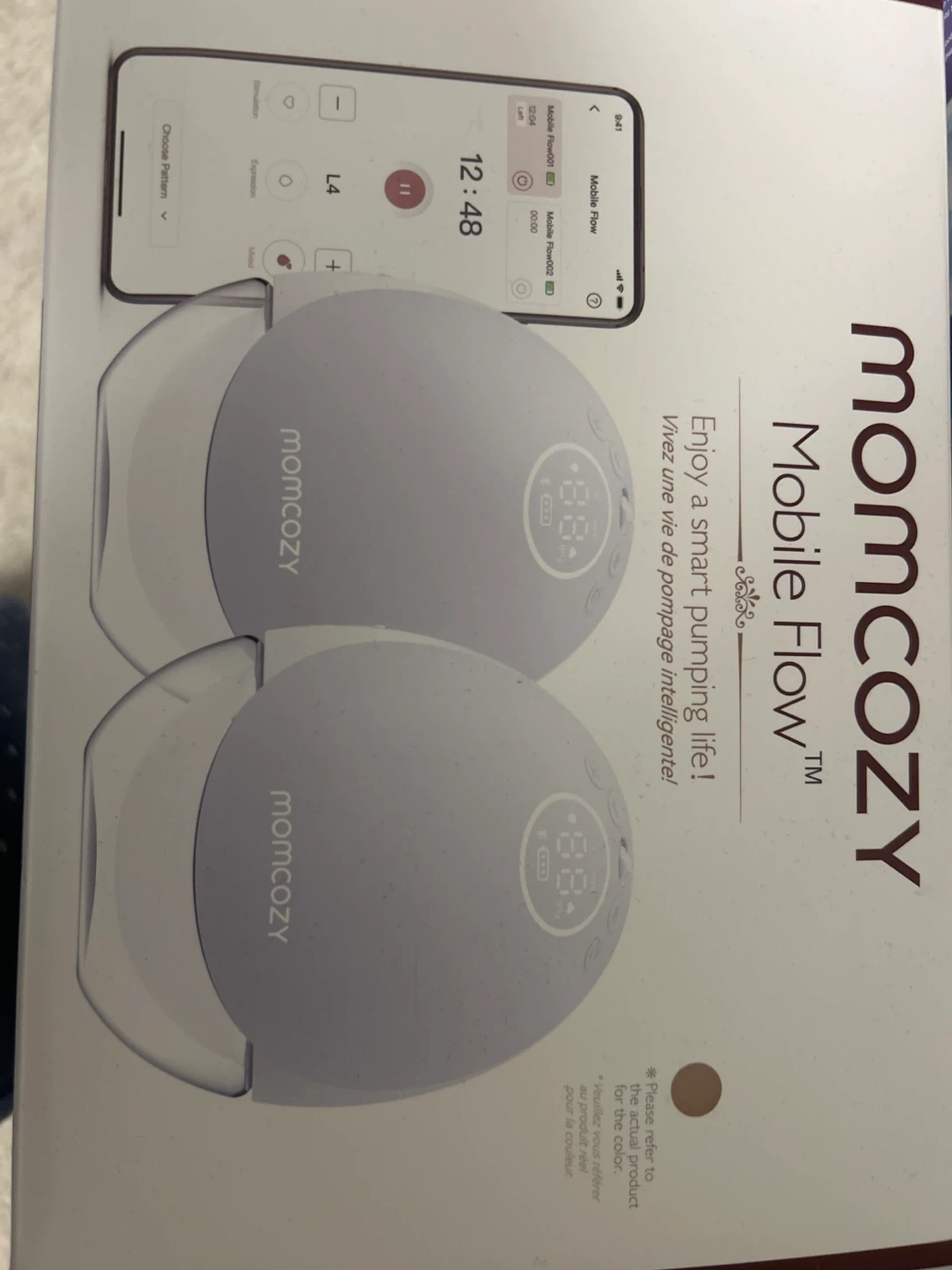 This is the Momcozy Mobile Flow wearable double electric breast pump. It supports up to 150 minutes of pumping with its high-capacity battery. Choose from 3 modes and 15 suction levels to customize your comfort. The app connects for controlled sessions and real-time pumping history.