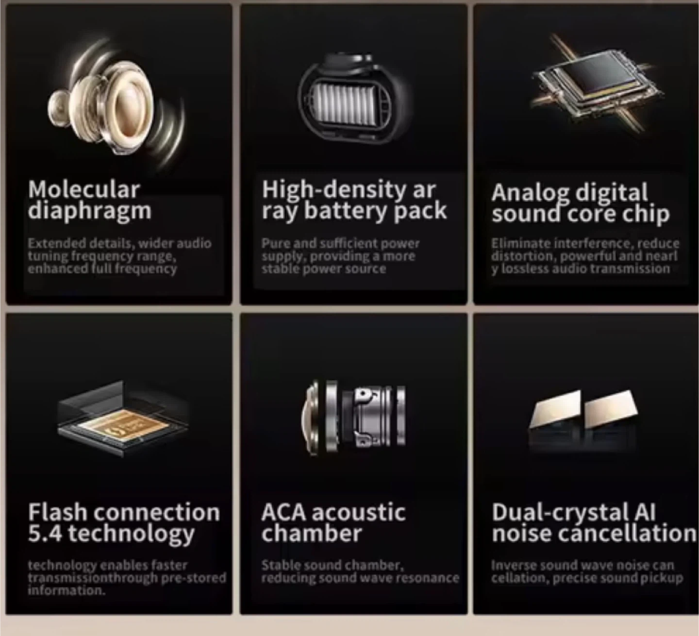 Acer TWS wireless headset with a super long standby time. Features intelligent high-definition sound quality decoding and directed sound transmission. Includes a polymer diaphragm for enhanced audio.