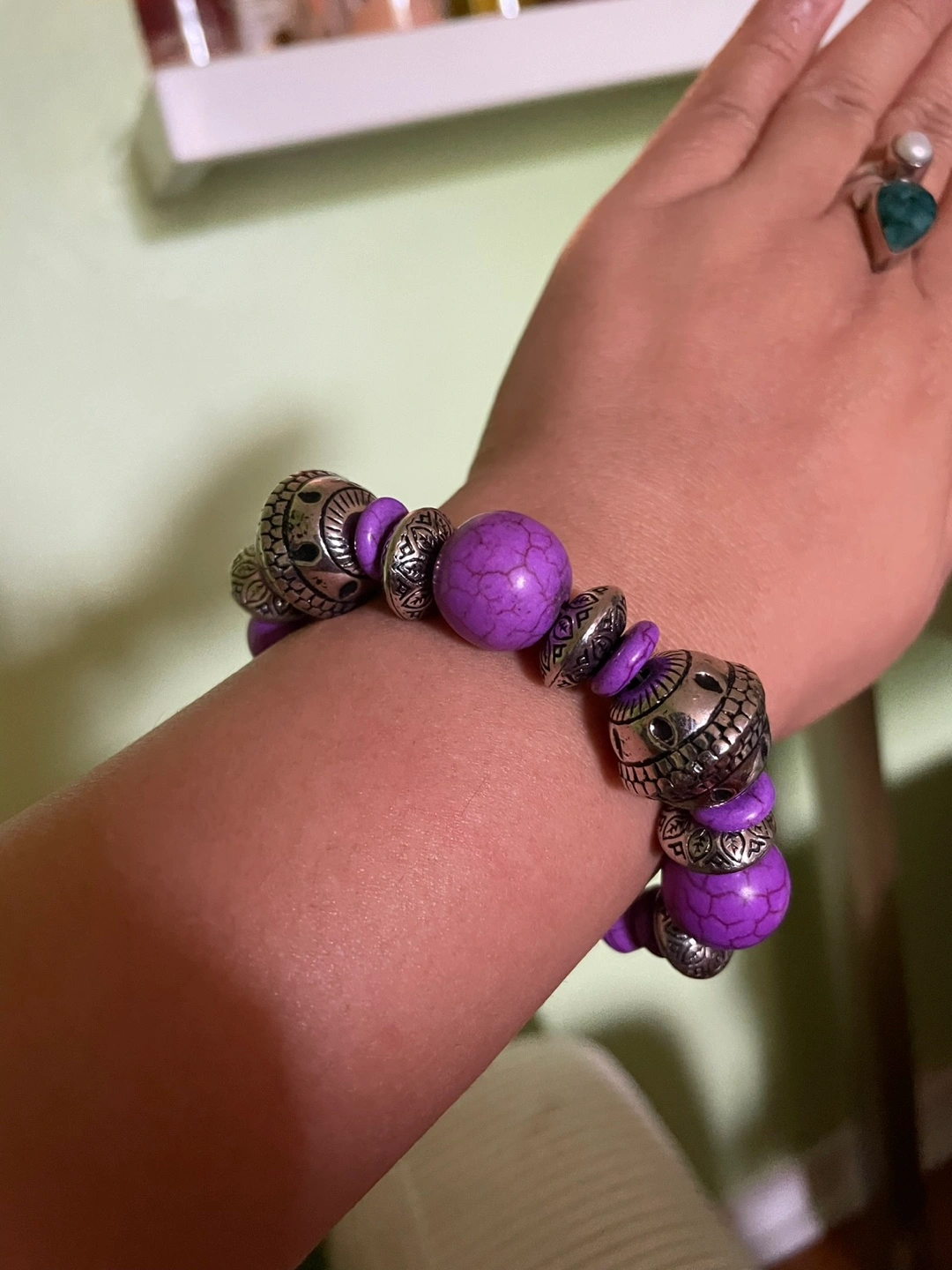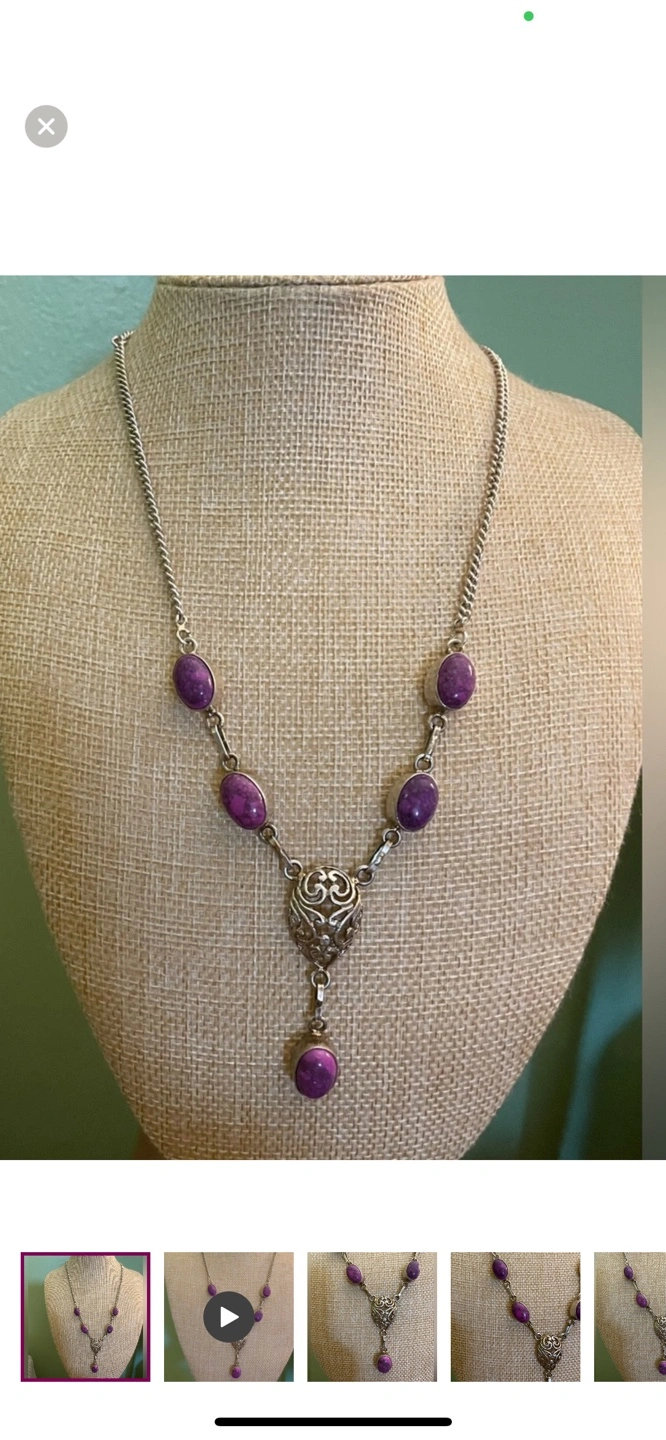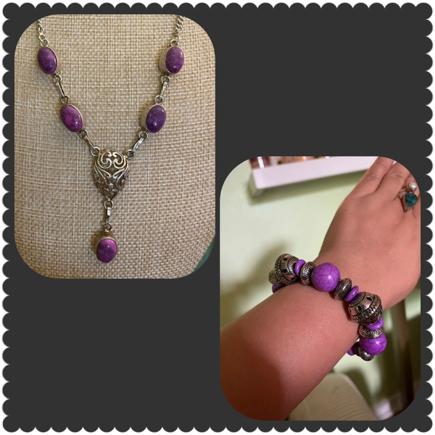 Beautiful sterling silver purple stone necklace and bracelet set. Silver-toned metal accents. Elegant design. Perfect for adding a touch of colour to your outfit.