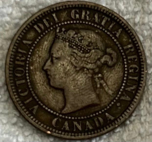 This is an 1876-H Canadian Large Cent coin, a tangible piece of history! It's a great find for collectors or anyone interested in Canadian heritage. Cash accepted.
