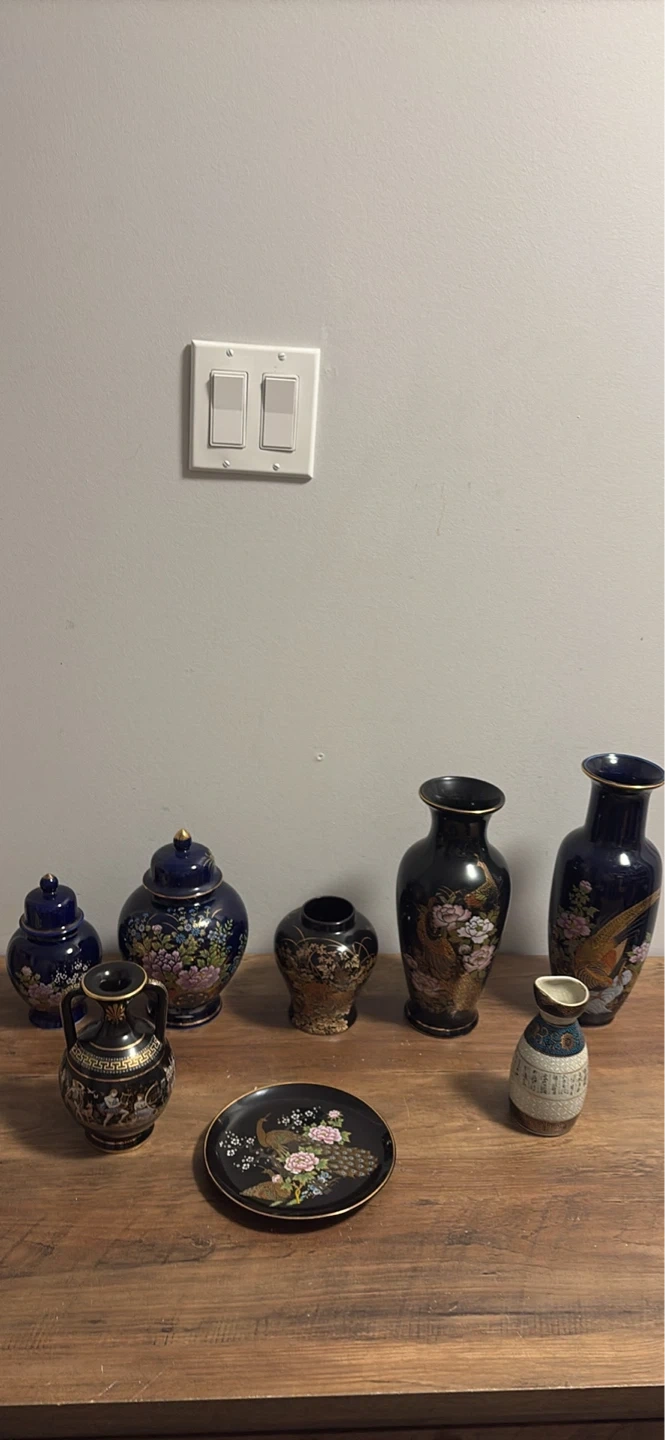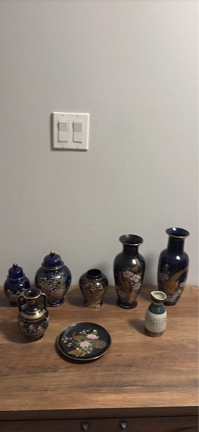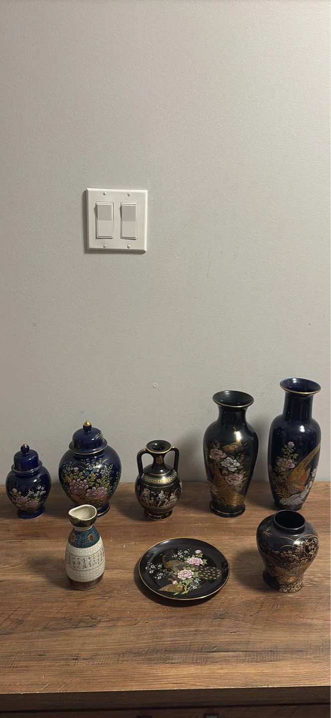 Assorted Decorative Ceramic Vases and Plate