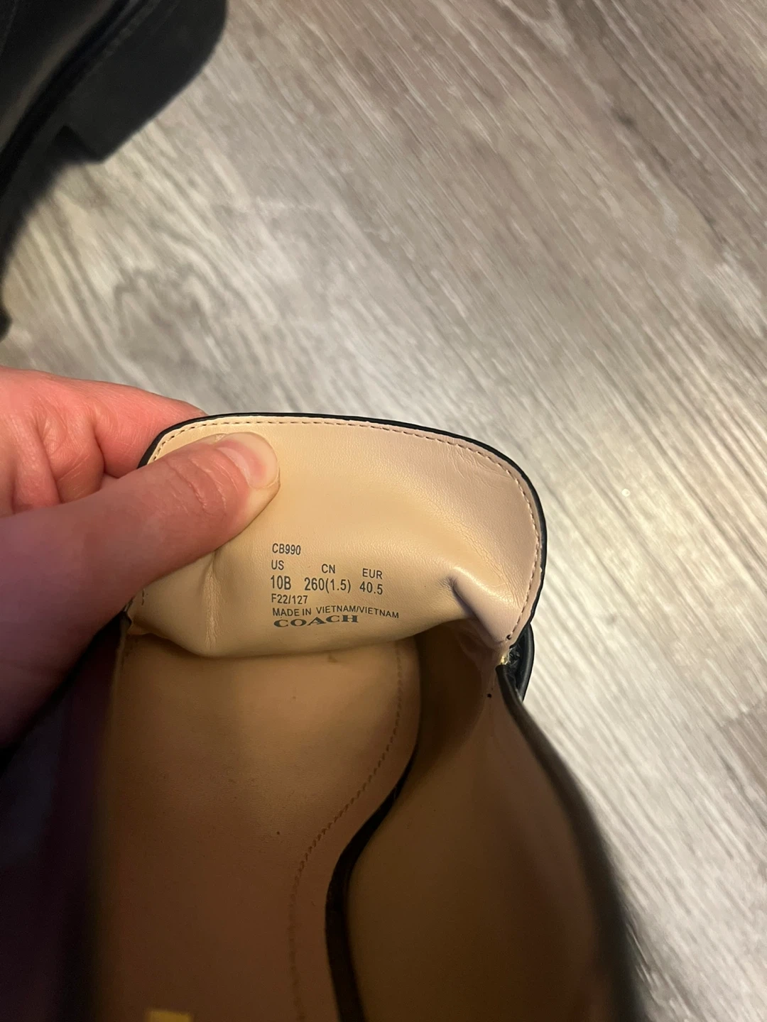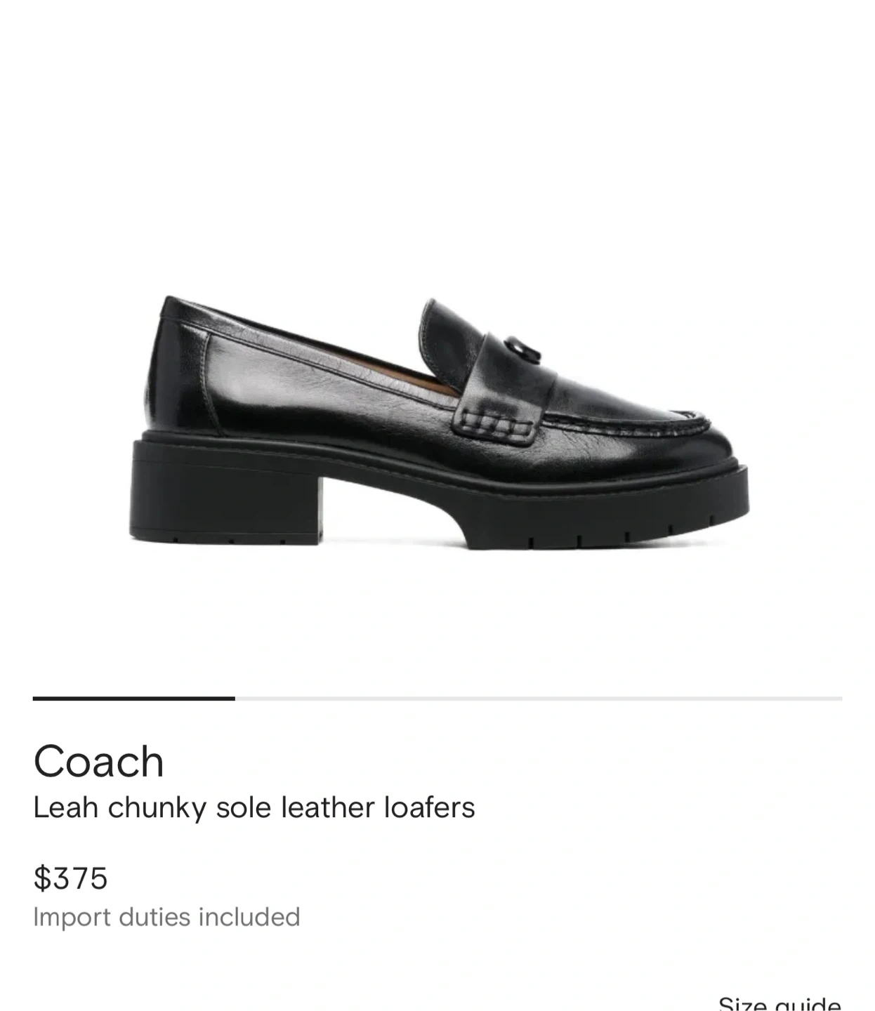 Coach Leah chunky sole leather loafers in black. Genuine leather material. Made in Vietnam. Size 10B US.