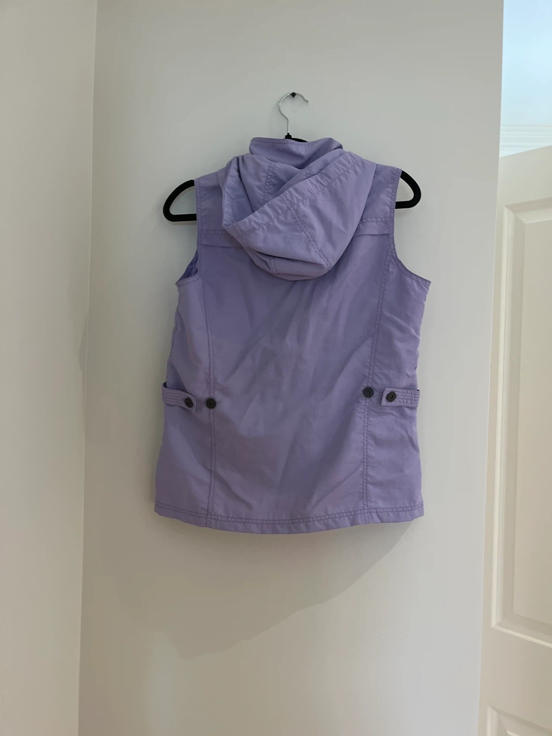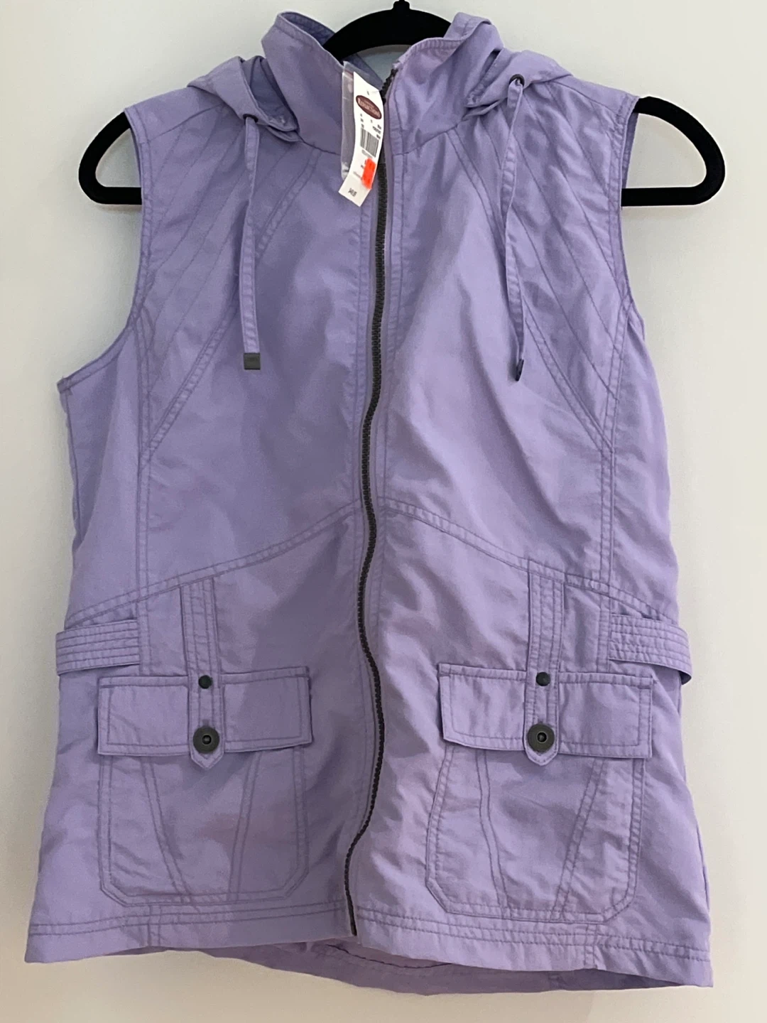 Lavender hooded vest from Northern Reflections. Size small. It has four front pockets and a full zip closure. A versatile piece for layering!