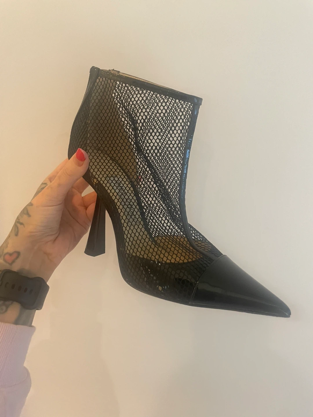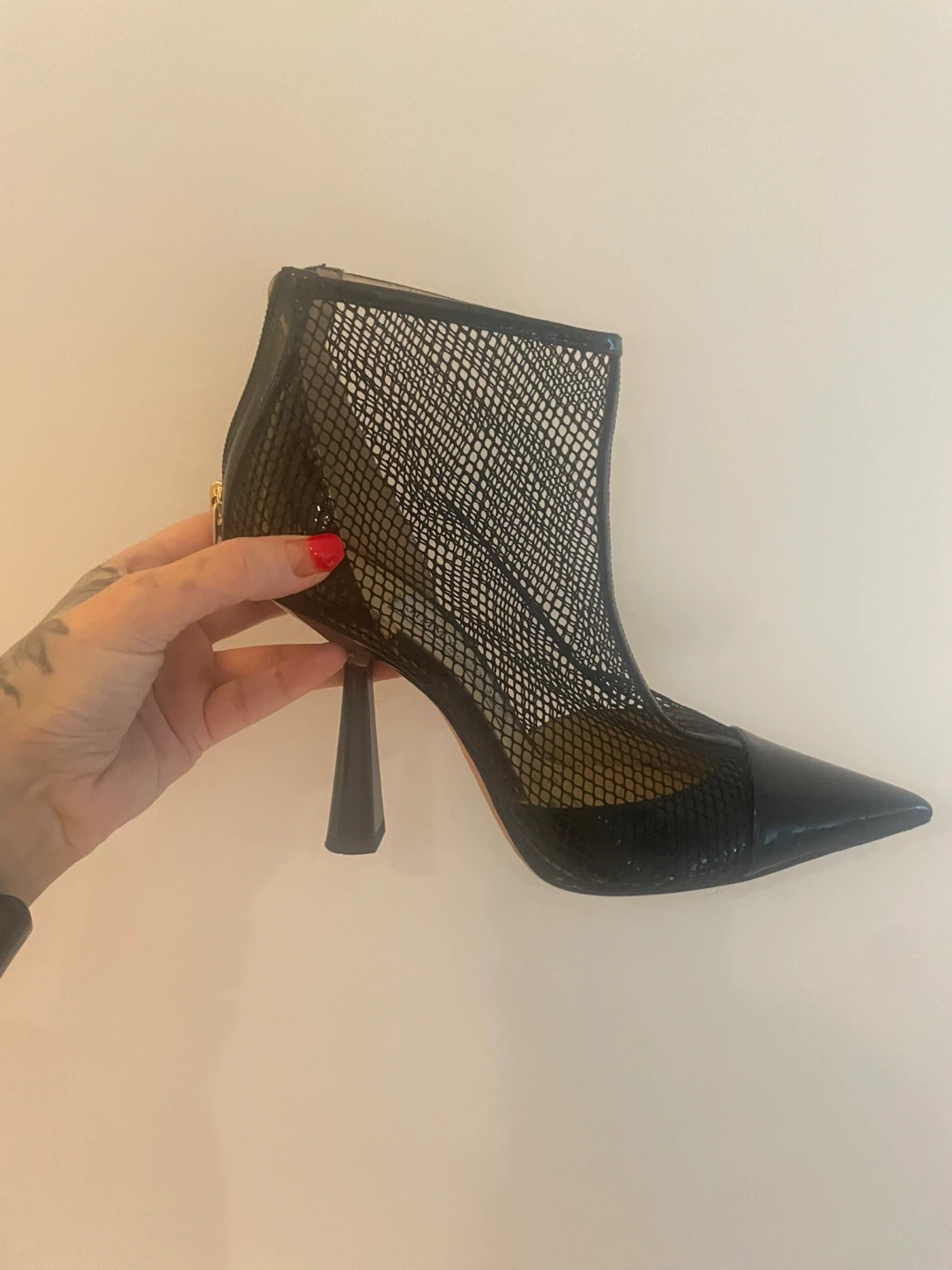 Size 8 Jimmy Choo Mesh heels. Bought from Holt Renfrew for $1150. Worn out two times.