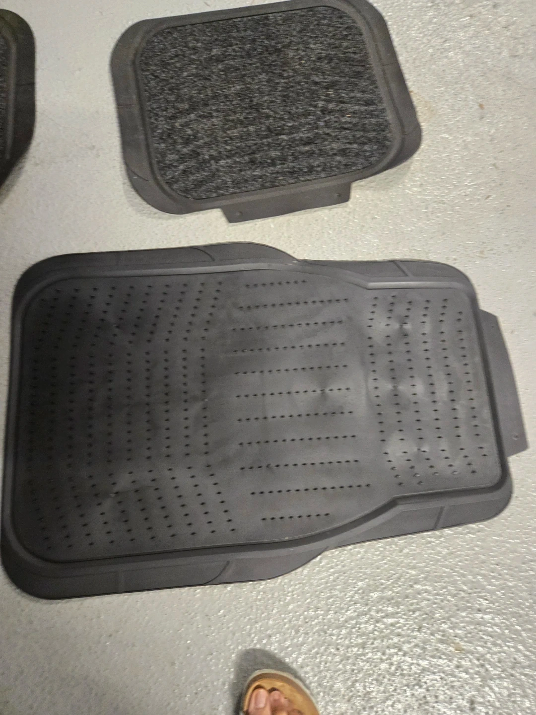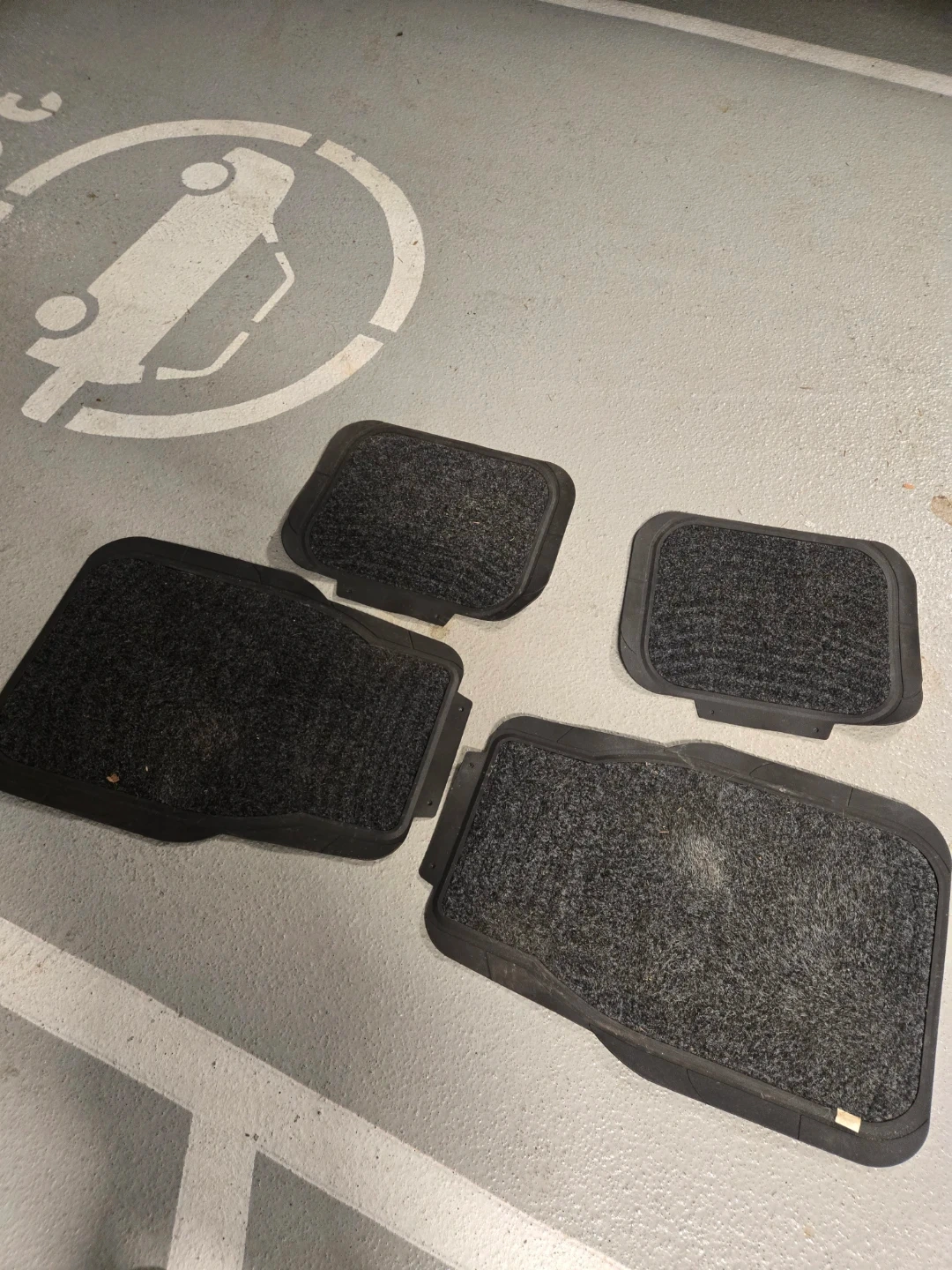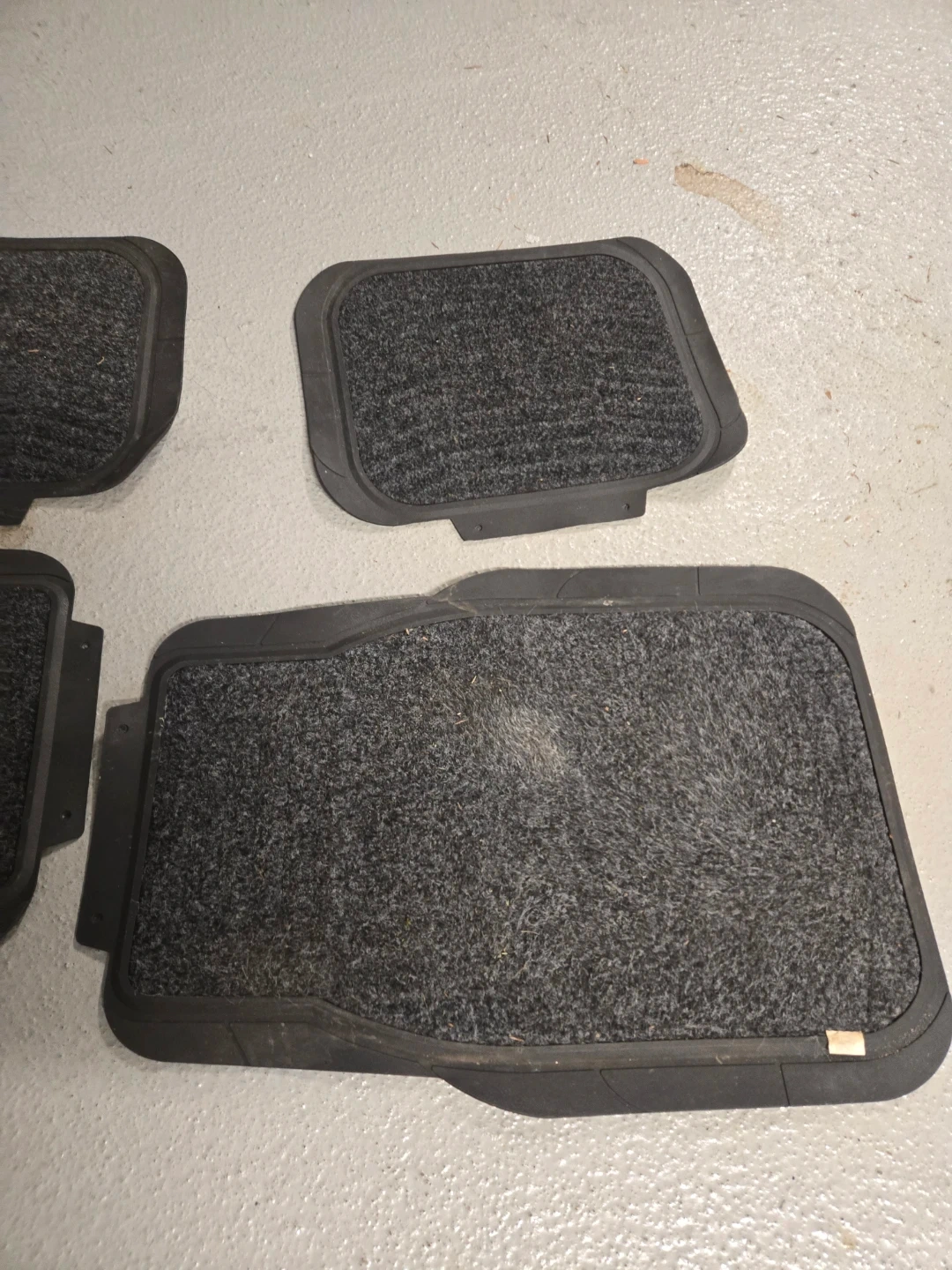 This set includes four all-weather car floor mats. Two are carpeted and two are rubberized with a textured pattern. They're designed to protect your vehicle's interior from dirt and moisture. Helps keep your car's floors clean!