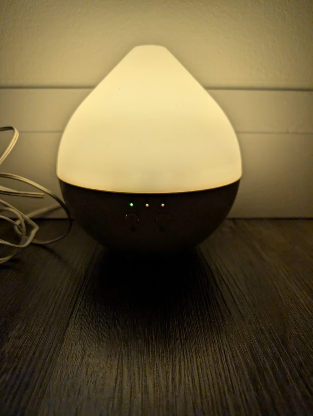 This essential oil diffuser has a large water tank for extended use. It features adjustable timer settings for 2, 6, or 12 hours. Emits a soft, warm light.