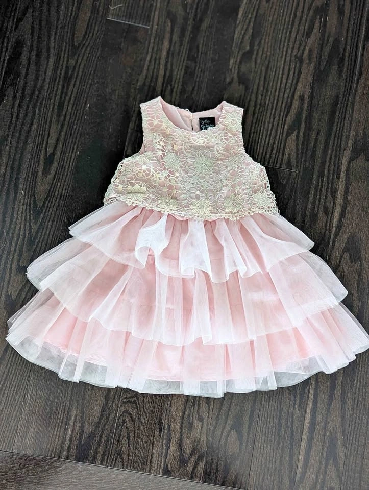 New Cynthia Rowley party dress in size 4T (tag also says 3–4 years). Features a soft pink color with a white and gold lace bodice and a tiered tulle skirt. Beautiful dress for special occasions.