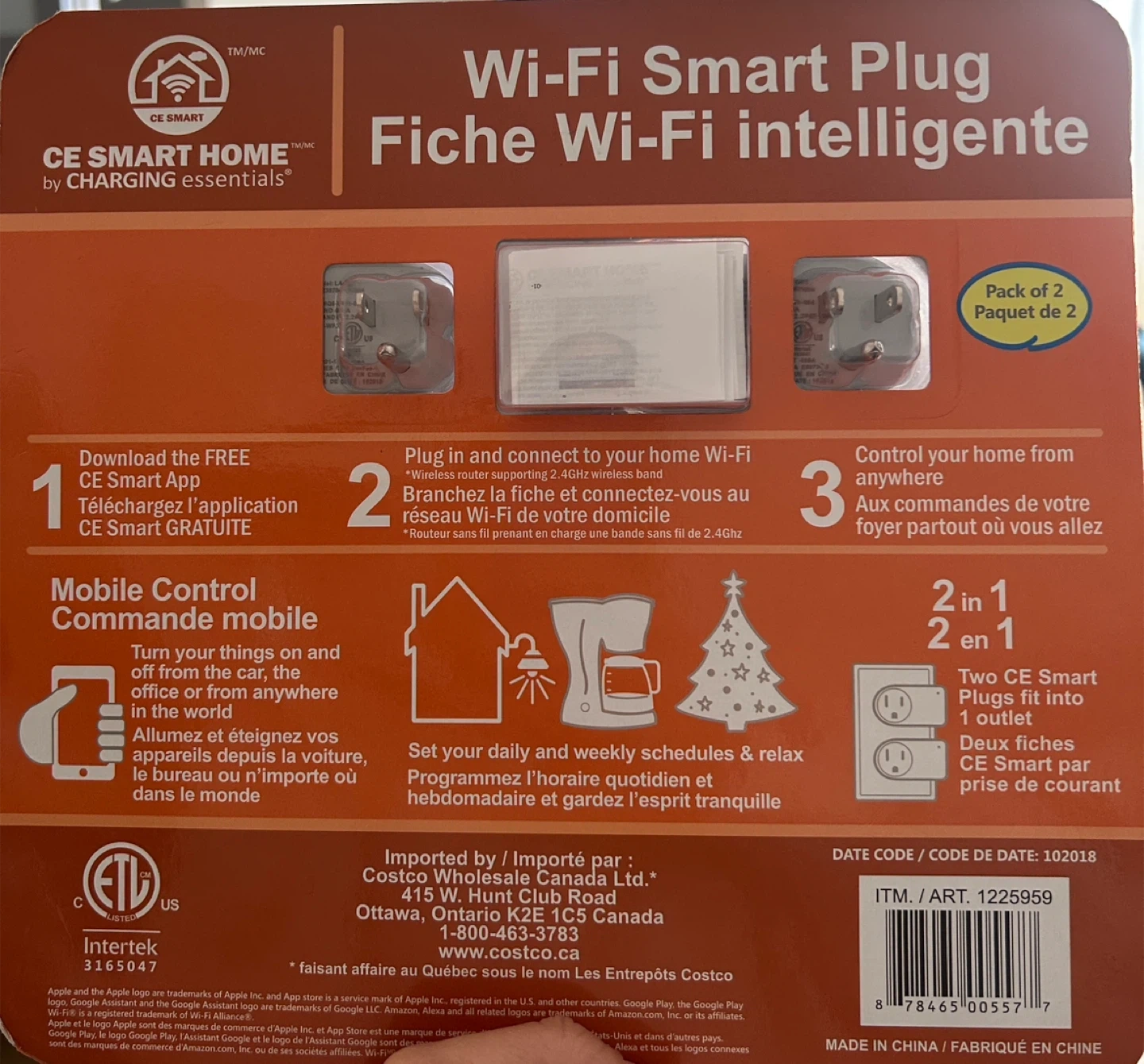 These CE Smart Home Wi-Fi smart plugs come in a pack of 2. They allow you to control appliances and lamps from anywhere using your smartphone. Set daily and weekly schedules for added convenience.