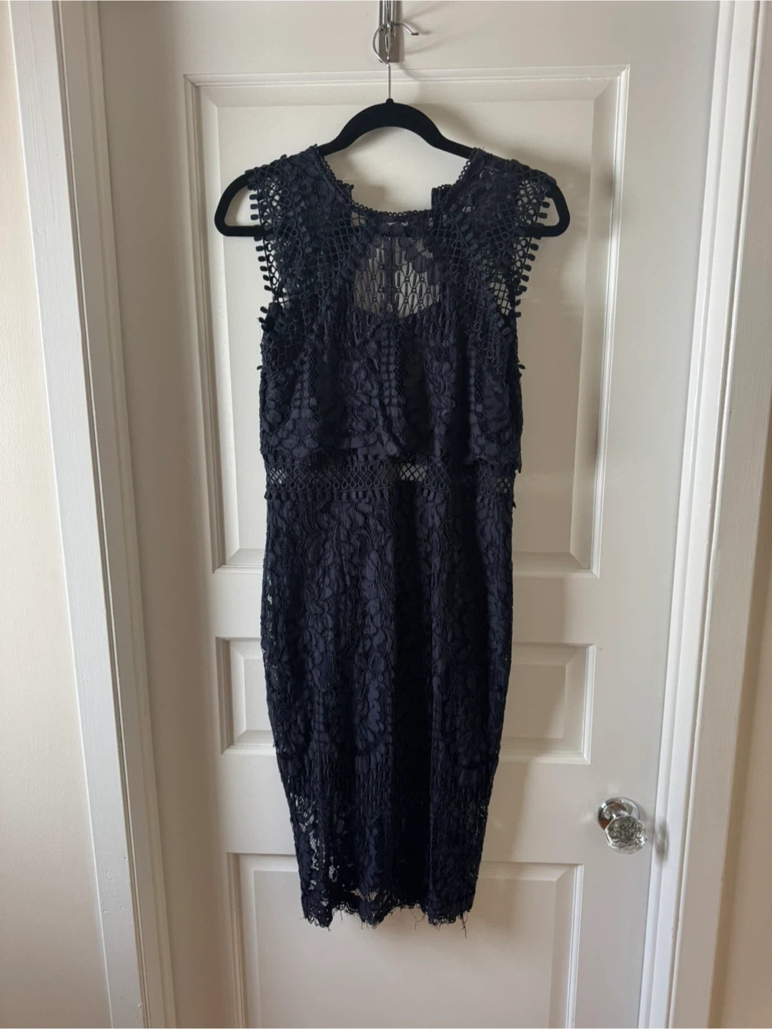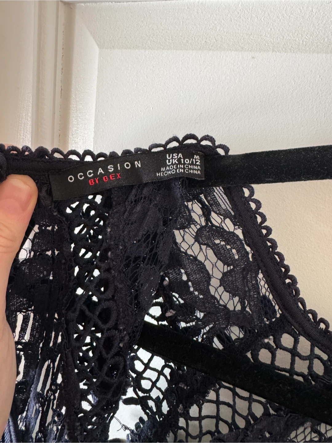 Selling a beautiful black lace dress from Occasion by Dex. It's a size M and in good condition. Perfect for a night out or a special event. The lace detailing is really lovely and adds a touch of elegance