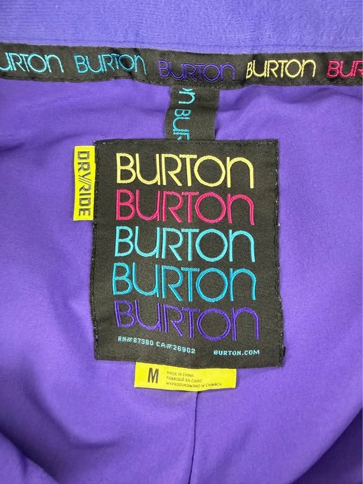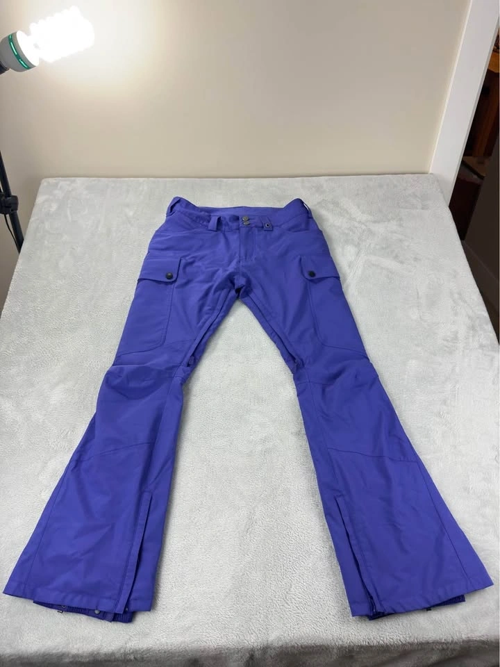 Burton Women's Size Medium Dryride Gloria Purple Insulated Snowboard Pants in good pre owned condition as shown in the photos with no flaws. Outershell: 100% polyester. Made in China. Measurements: Waist 16", Length/Outseam 41.5", Rise 9.5", Inseam 32", Hips 23.5", Leg Opening 10.5". Size Medium Women's. Color purple. Brand Burton.