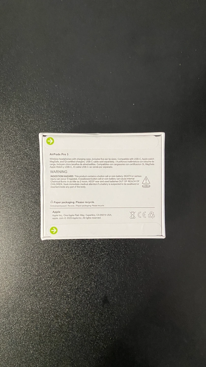 Apple AirPods Pro with charging case and USB-C cable. Includes different ear tip sizes for a comfortable fit. These are the third generation model.