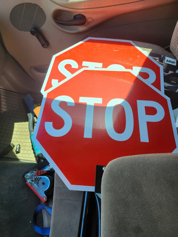 Pilot car sign. New whelen lights on top and new round lights as well front and back. Signs works as it should. Included is the Kenwood VHF/UHF 2 way radio with mic and brand new antenna. 2 construction ahead signs, 2 stop slow paddle and 1 yield to oncoming traffic. 1300 takes it all.