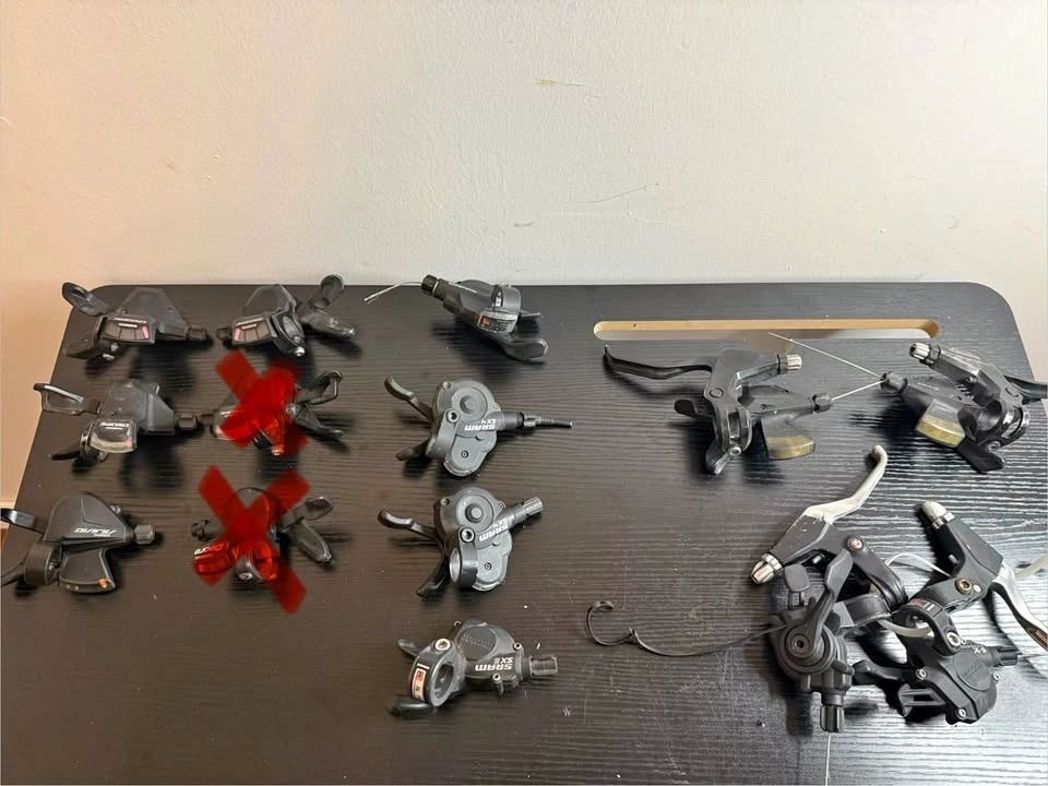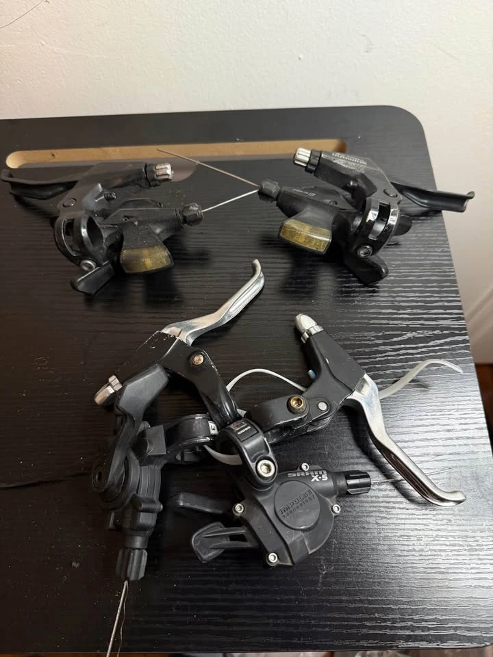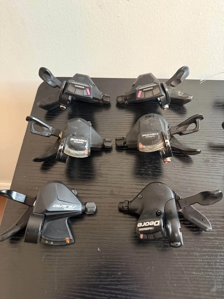 Selling high-quality mountain bike shifters, includes both front and rear. Perfect for upgrades, repairs, or custom MTB builds. Compatible with Shimano and SRAM drivetrain systems. Made with durable aluminum and composite components. Used, sold as-is, in good working order. Check your bike’s compatibility (speed, drivetrain) before purchasing. Photos show actual condition.