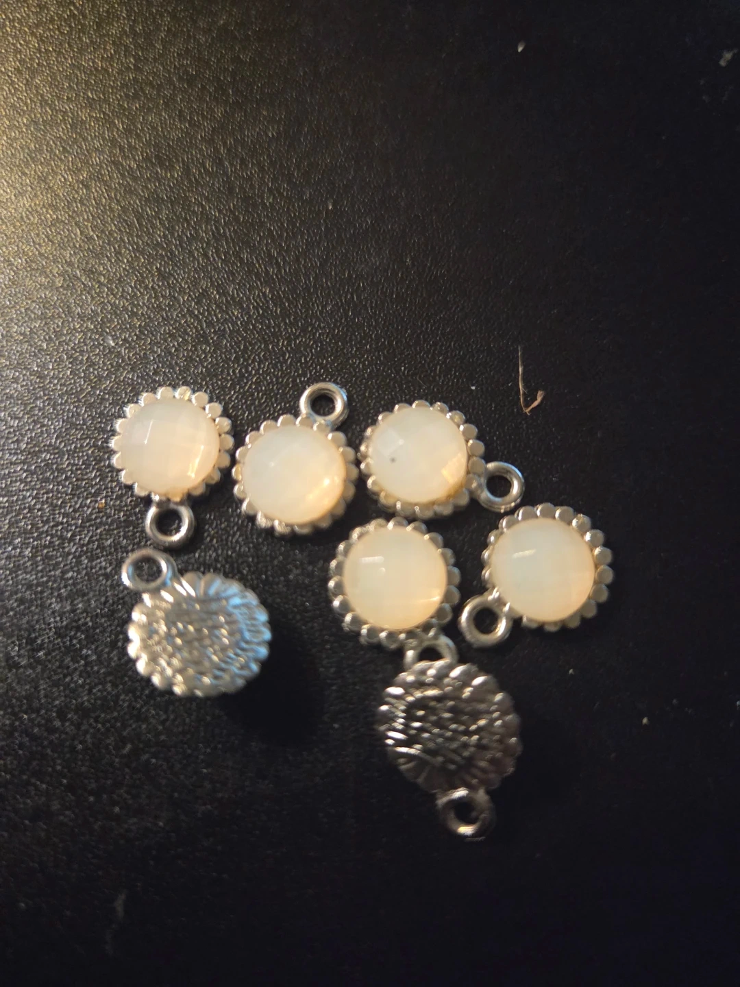 Set of 7 Cream Cabochon Charms with Silver Tone Bezel