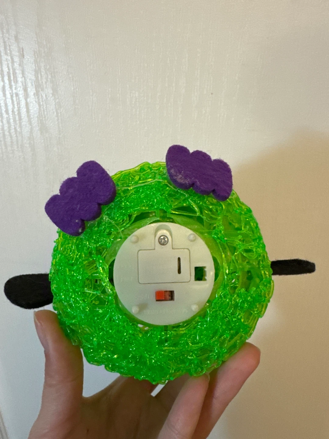 Cute green owl decoration is perfect for Halloween! It features big googly eyes and a witch hat. It lights up to add a spooky glow to your home. Requires batteries (not included).