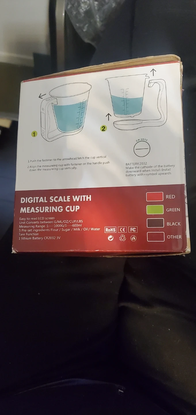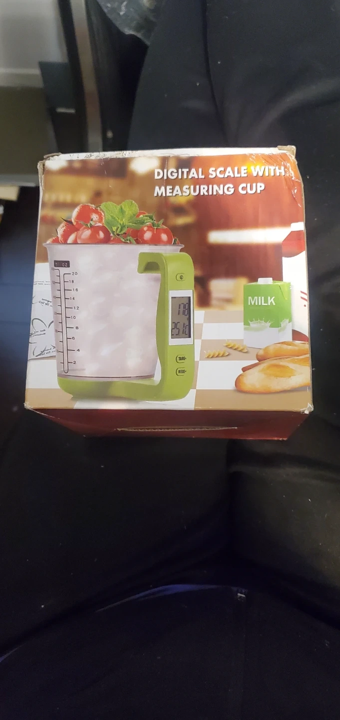 Digital scale with measuring cup, perfect for precise measurements in the kitchen! It's easy to read and can measure in g/ml/oz/cup/lbs. Great for flour, sugar, milk, or oil I have 2 of them brand new in the box.