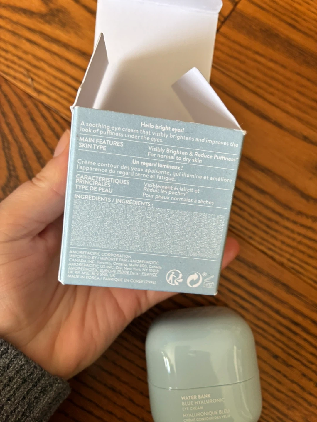 This LANEIGE eye cream is formulated with Blue Hyaluronic Acid and ingredients from deep sea algae. It's designed to brighten and reduce puffiness under the eyes. 25 ml (0.8 fl. oz.).